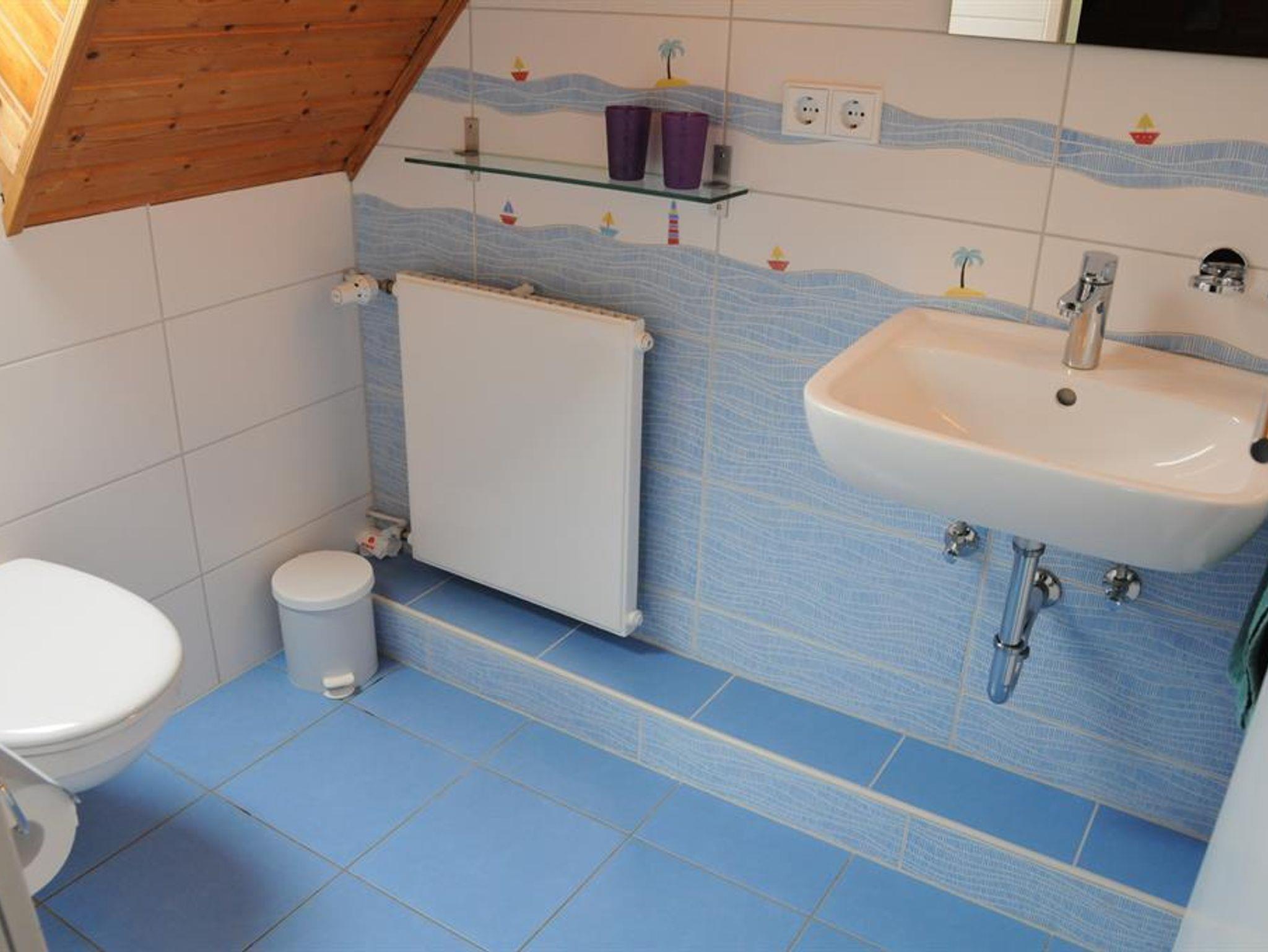 Im Duschbad finden Ihre Utensilien ihren Platz, die Füße werden Dank der Fußbodenheizung auch bei nordischer Kühle nicht kalt.