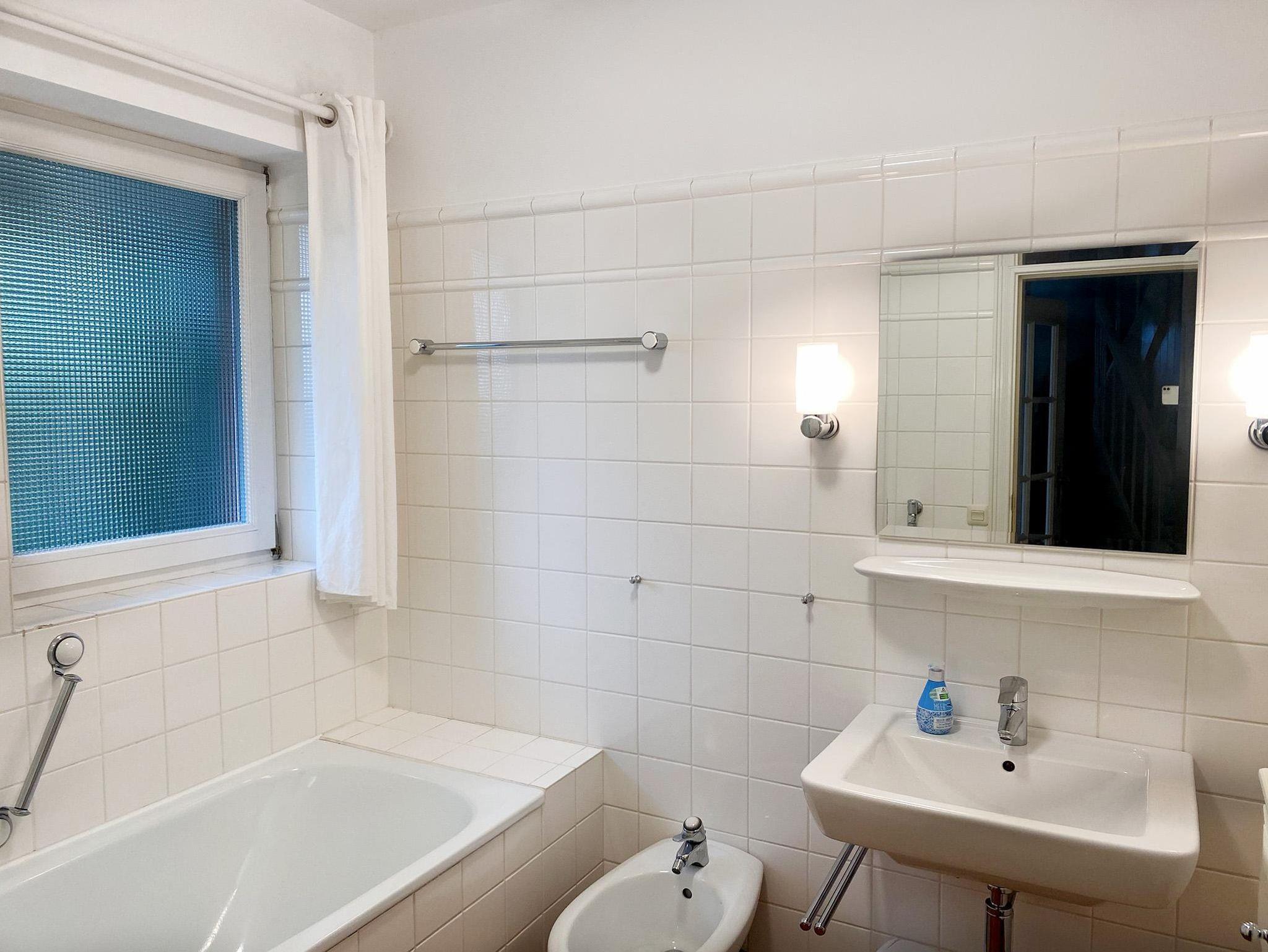 Bad EG: Badewanne, Waschbecken, Spiegel, WC, kl. Schrank