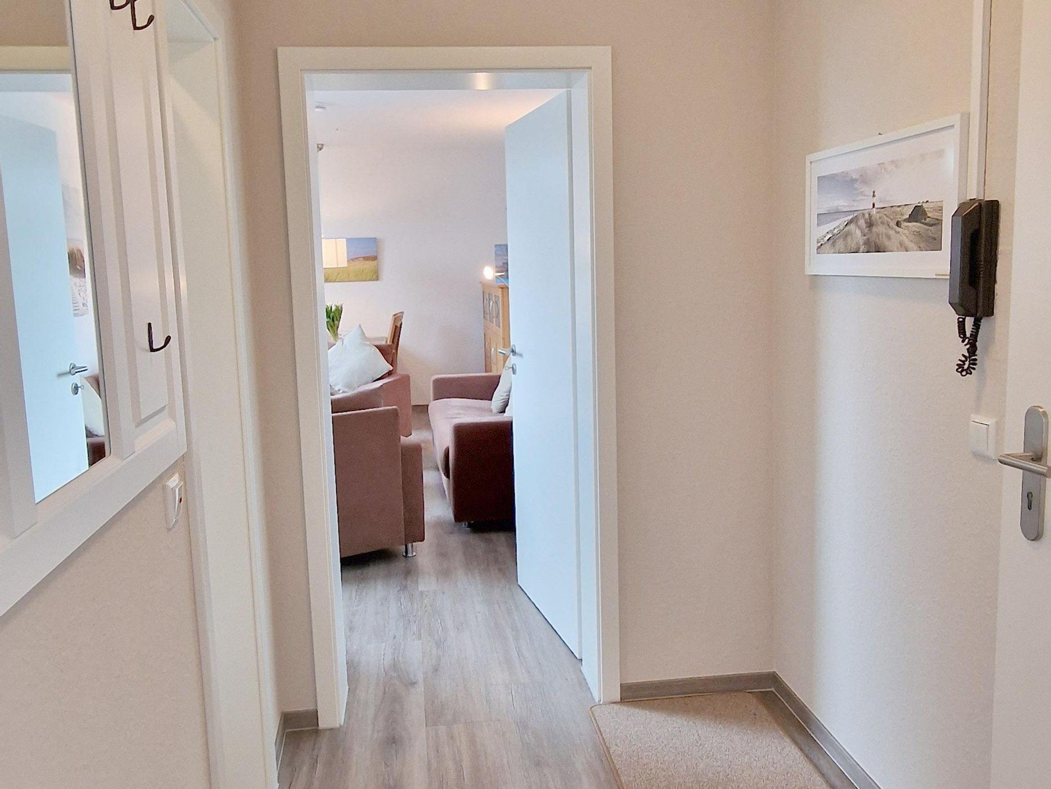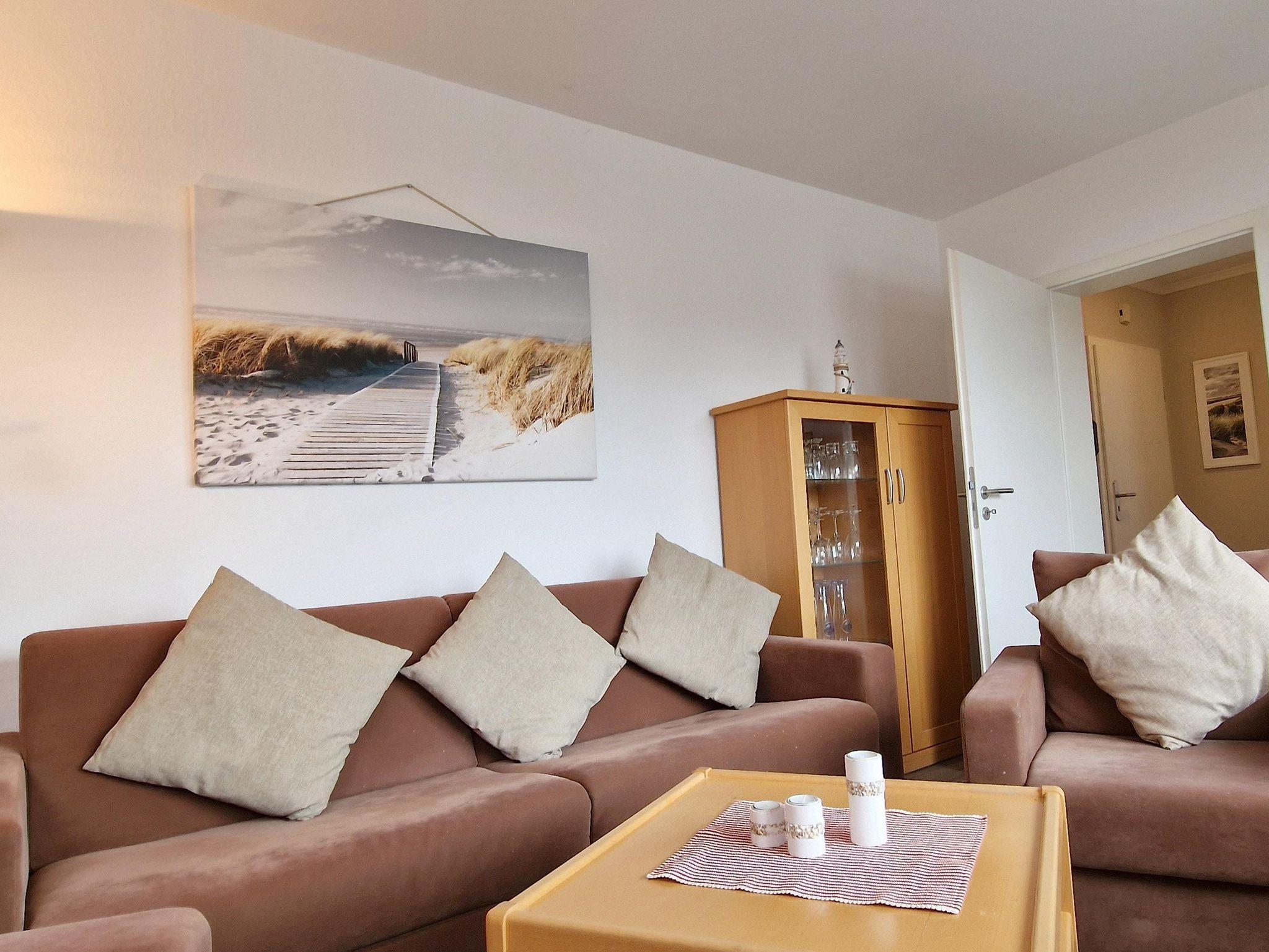 In der schmucken 2-Zimmer-Ferienwohnung Haus Nordsee Nr. 17 können Sie mit bis zu 4 Personen herrlichen Urlaub in der 2. Etage machen. Nachts spannen Sie auf der modernen Schlafcouch im Wohnzimmer oder im Doppelbett des Schlafzimmers aus. Die moderne, offene Küche mit Cerankochfeld und Backofen lädt zum Kochen, der große Süd-Ost-Balkon zum Entspannen ein.