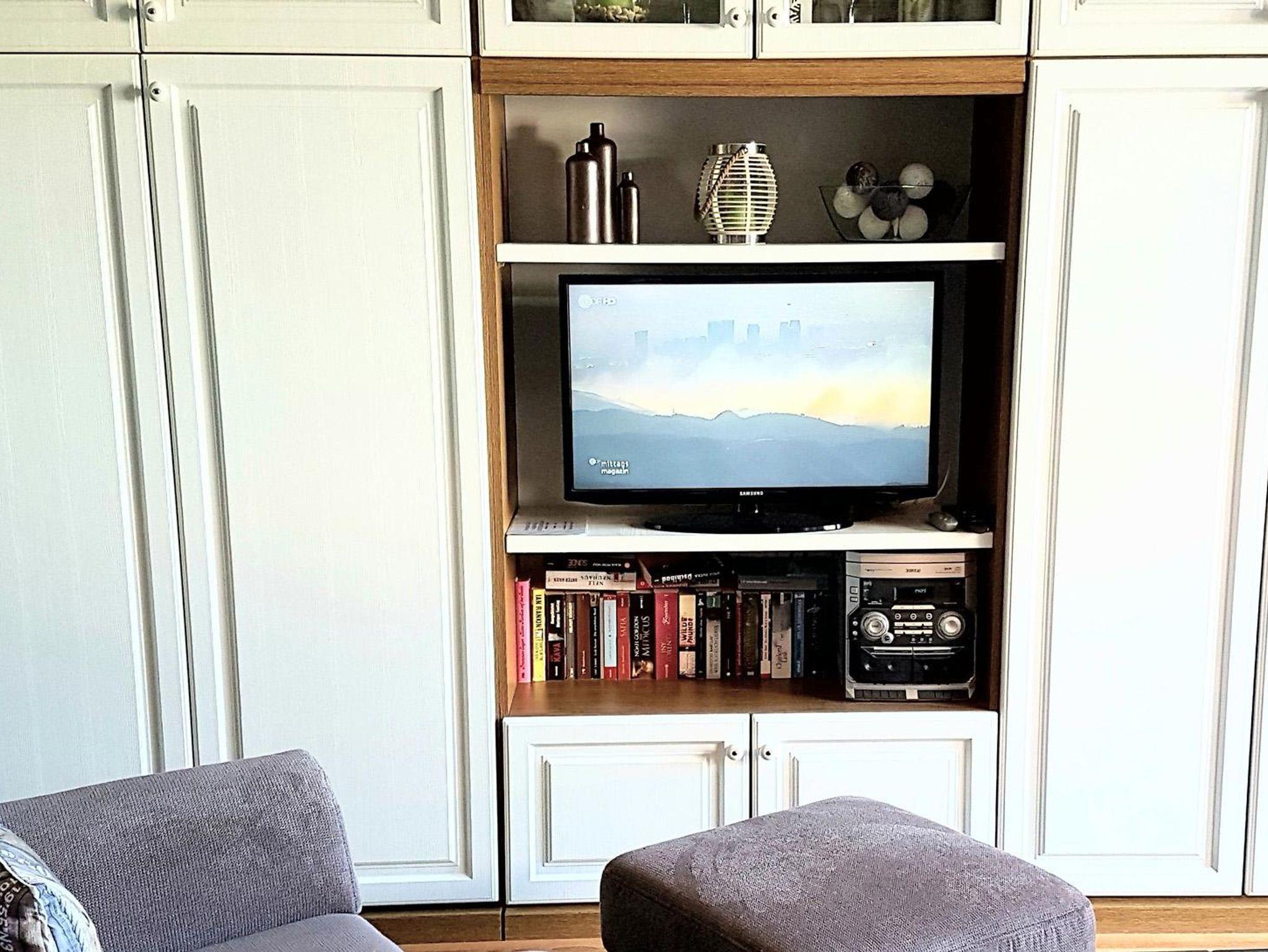 Wohnzimmer: 2 Couch, Couchtisch, Sessel, Ecktisch, Tischlampe, Nachtspeicherofen, Schrankwand, Schrank, TV-Schrank, Schrankdoppelbett, Kabel-TV, Flachbildschirm, Stereoanlage mit CD-Player, Esstisch, 4 Stühle, Küchenzeile, 4 Plattenherd mit Ceranfeld und Backofen, Dunstabzugshaube, Kühlschrank, Spülmaschine, Mikrowelle, Kaffeemaschine, Wasserkocher, Toaster, Eierkocher, Geschirr, Kochtöpfe