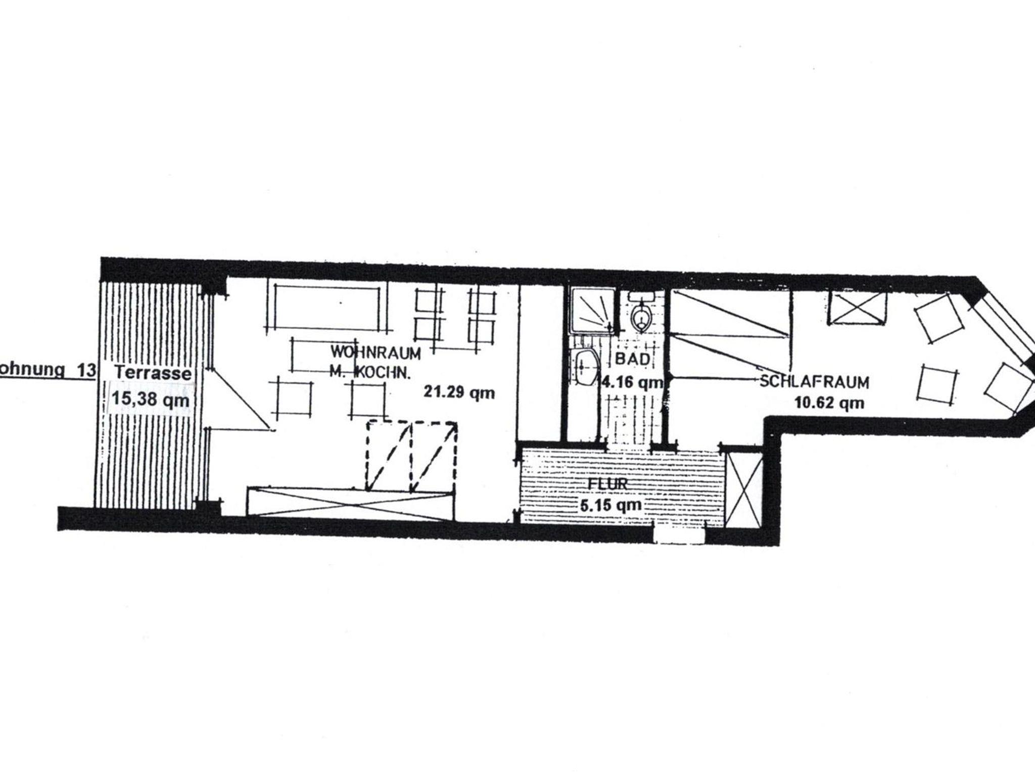 Haustiere: nicht erlaubt Terrasse15 qm Terrasse in Nord- Westlage, Tisch, 4 Stühle, Wäscheständer, halb überdacht