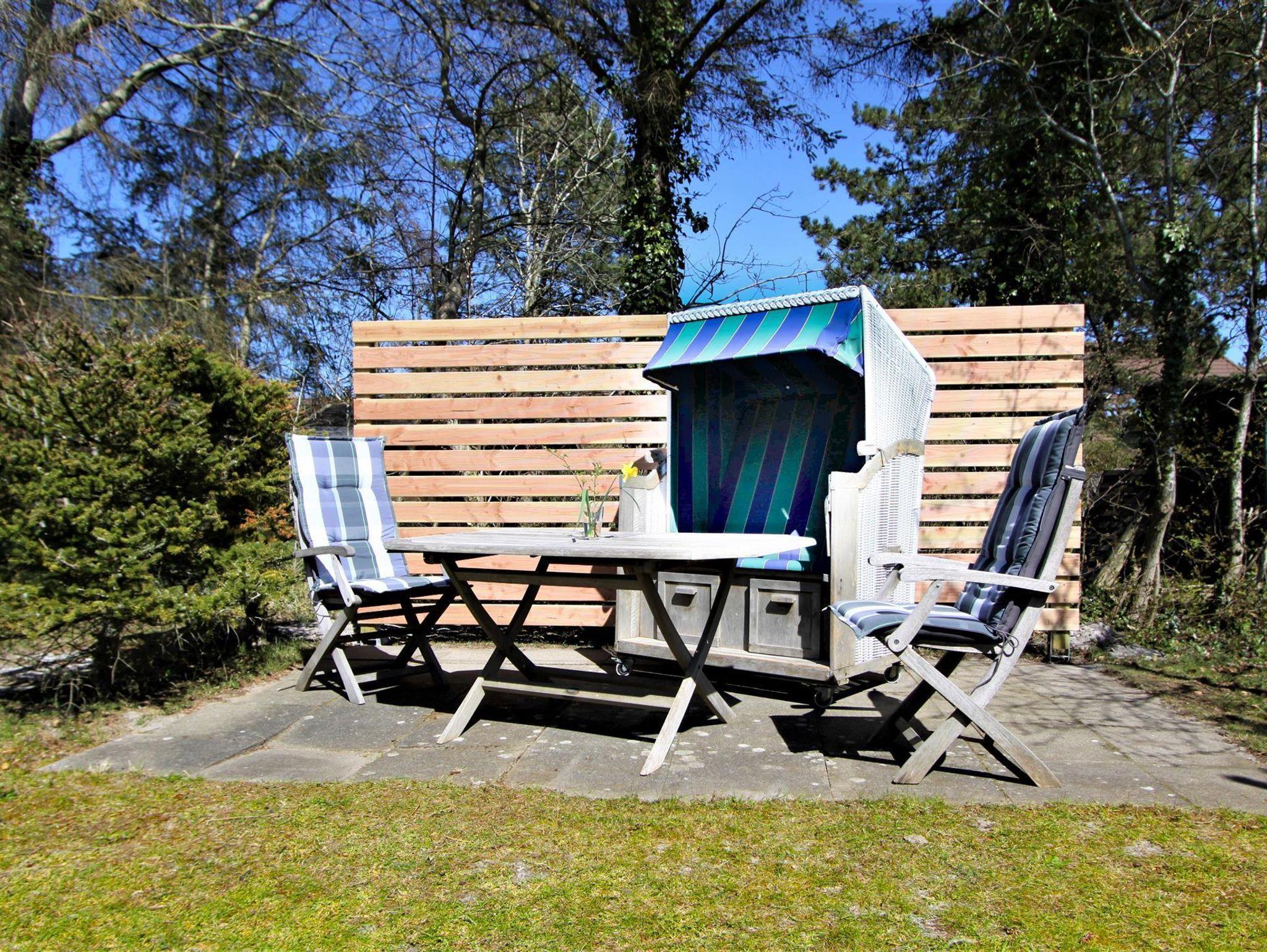 Fernab vom Alltagstrubel steht Ihnen der Garten mit Liegefläche, Grün, Gartenmöbeln, Strandkörben und Grill zur freien Verfügung.