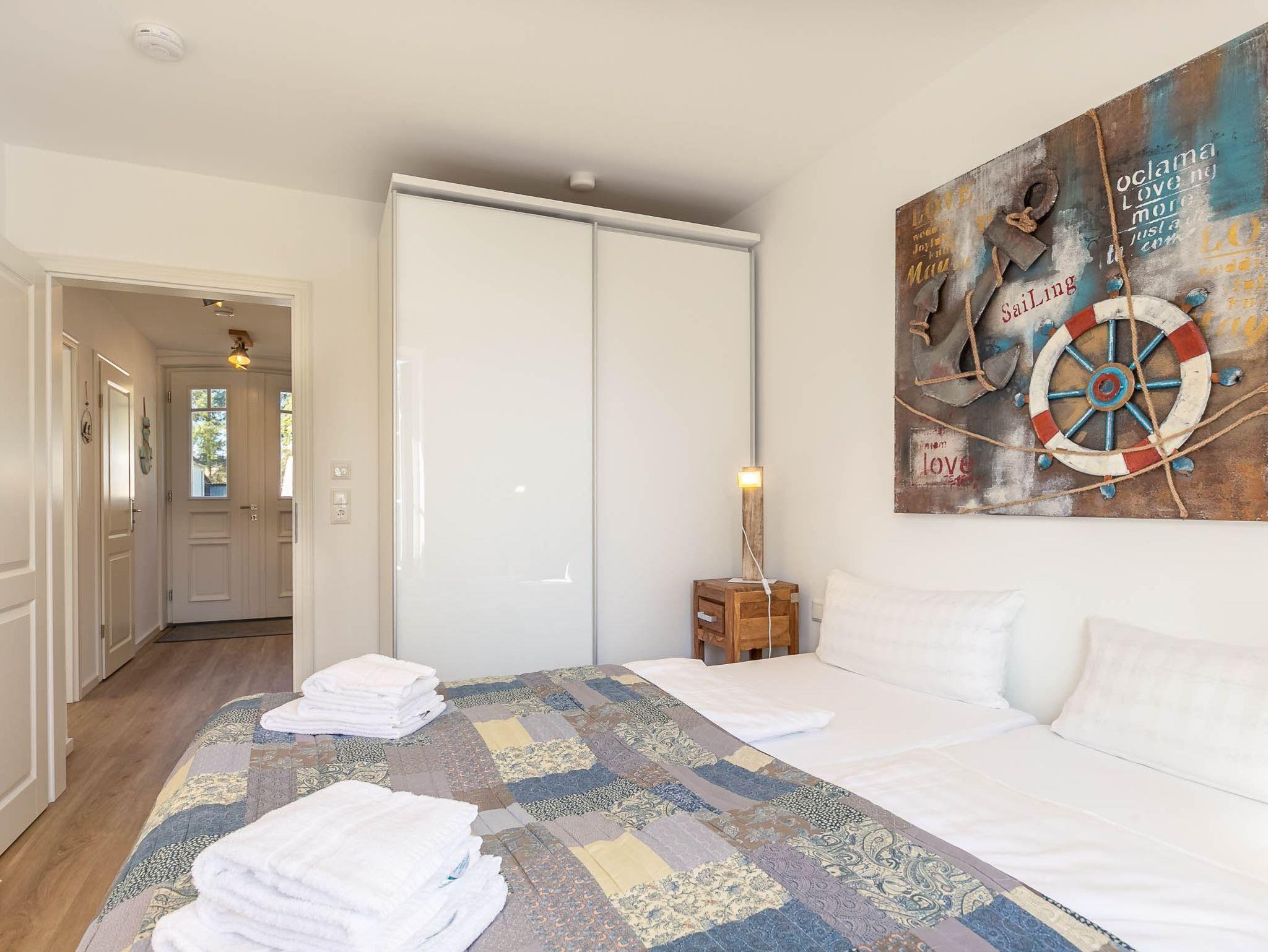 2. Schlafzimmer (OG) mit Doppelbett (2x 90x200cm), Ledersofa, Ganzkörperspiegel, Kleiderschrank und Kommode.