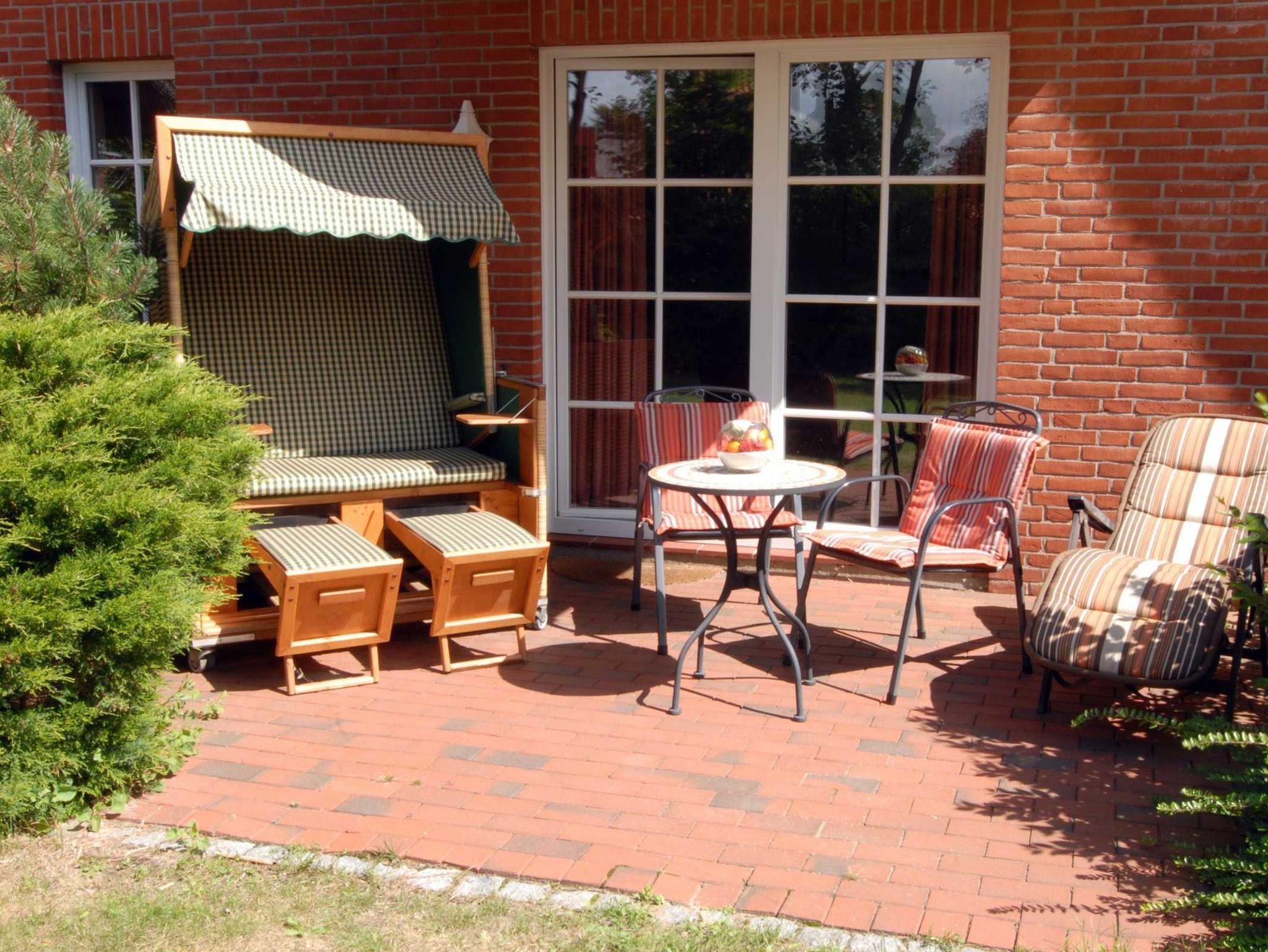 Terrasse: Teilüberdachte Westterrasse mit Strandkorb ? perfekt zum Entspannen und Tagträumen.