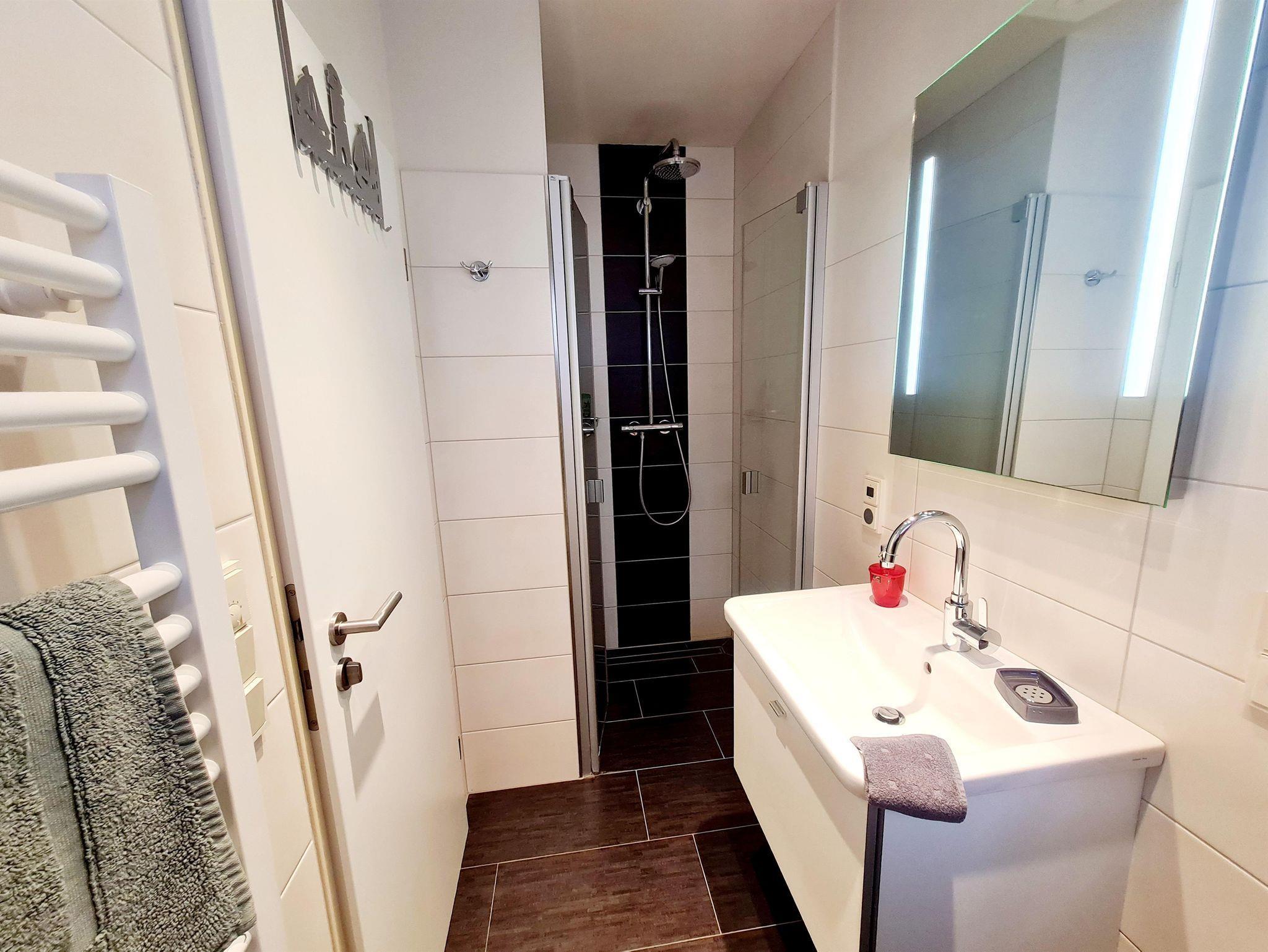 Die Wohnung besteht aus einem Schlafzimmer, Wohn-Schlafraum, Küchenecke, Duschbad und Diele mit Einbauschrank.