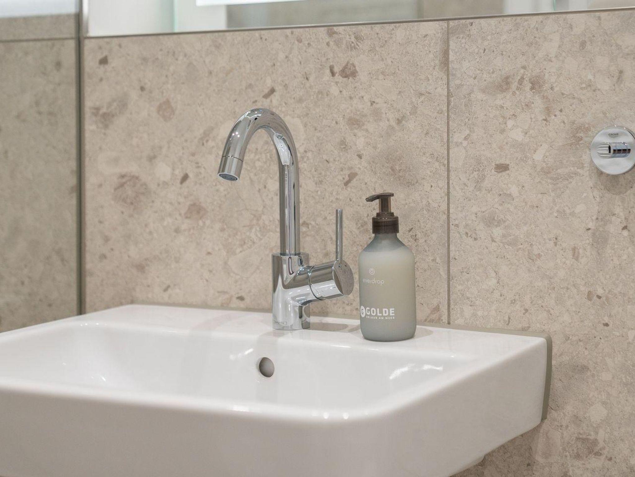 Der helle Wohnbereich der Wohnung ist mit einem Schlafsofa, einem Couchtisch und einem Esstisch mit 4 Stühlen ausgestattet. Im Garten befindet sich eine eigene Terrasse für die Wohnung Över`n DIek. Hier steht ein kleiner Tisch mit 2 Stühlen für Sie bereit. Die Küchenzeile bietet ein Cerankochfeld, Geschirr, Kaffeemaschine, Kühlschrank, Toaster, Wasserkocher und Backfunktion. Das Schlafzimmer verfügt über ein Doppelbett und einen Fernseher. Ebenso gehören ein Flur mit Garderobe sowie ein Badezimmer mit Dusche, Waschbecken und WC zur Ausstattung. Zur Unterhaltung gibt es einen Internet-TV Flachbildschirm und kostenloses WLAN. Ein Parkplatz für Ihr Auto befindet sich auf dem Grundstück.