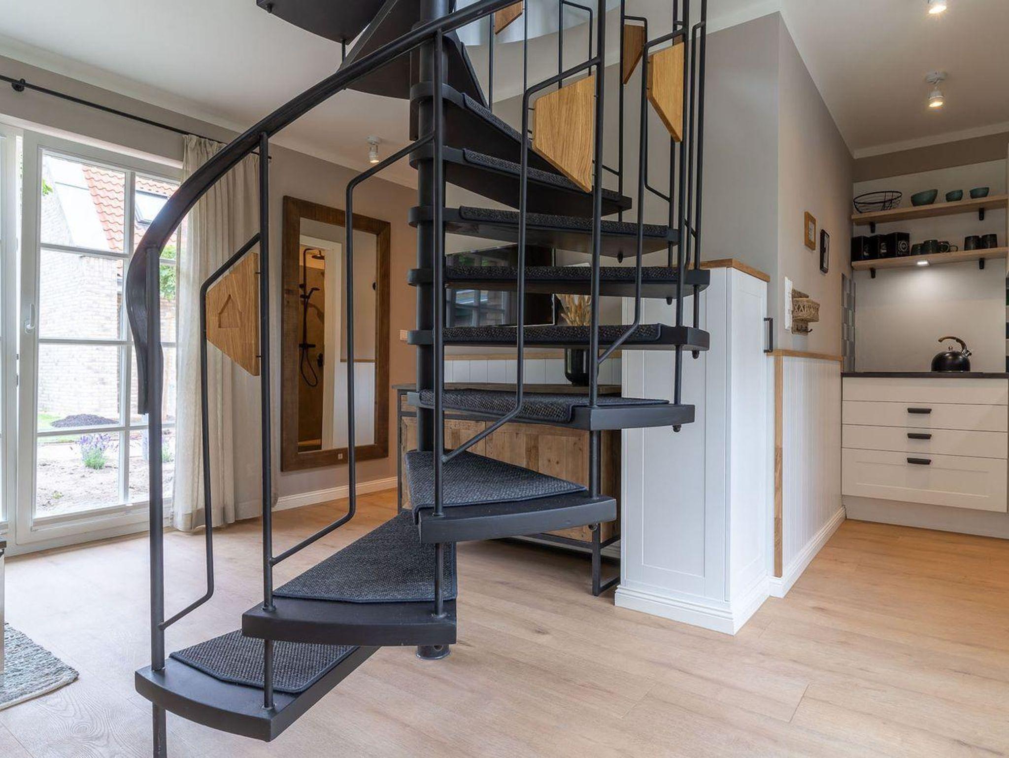 Über eine Wendeltreppe aus dem Wohnraum gelangt man in das Obergeschoss. Hier befindet sich das gemütliche Schlafzimmer, mit einem Doppelbett.