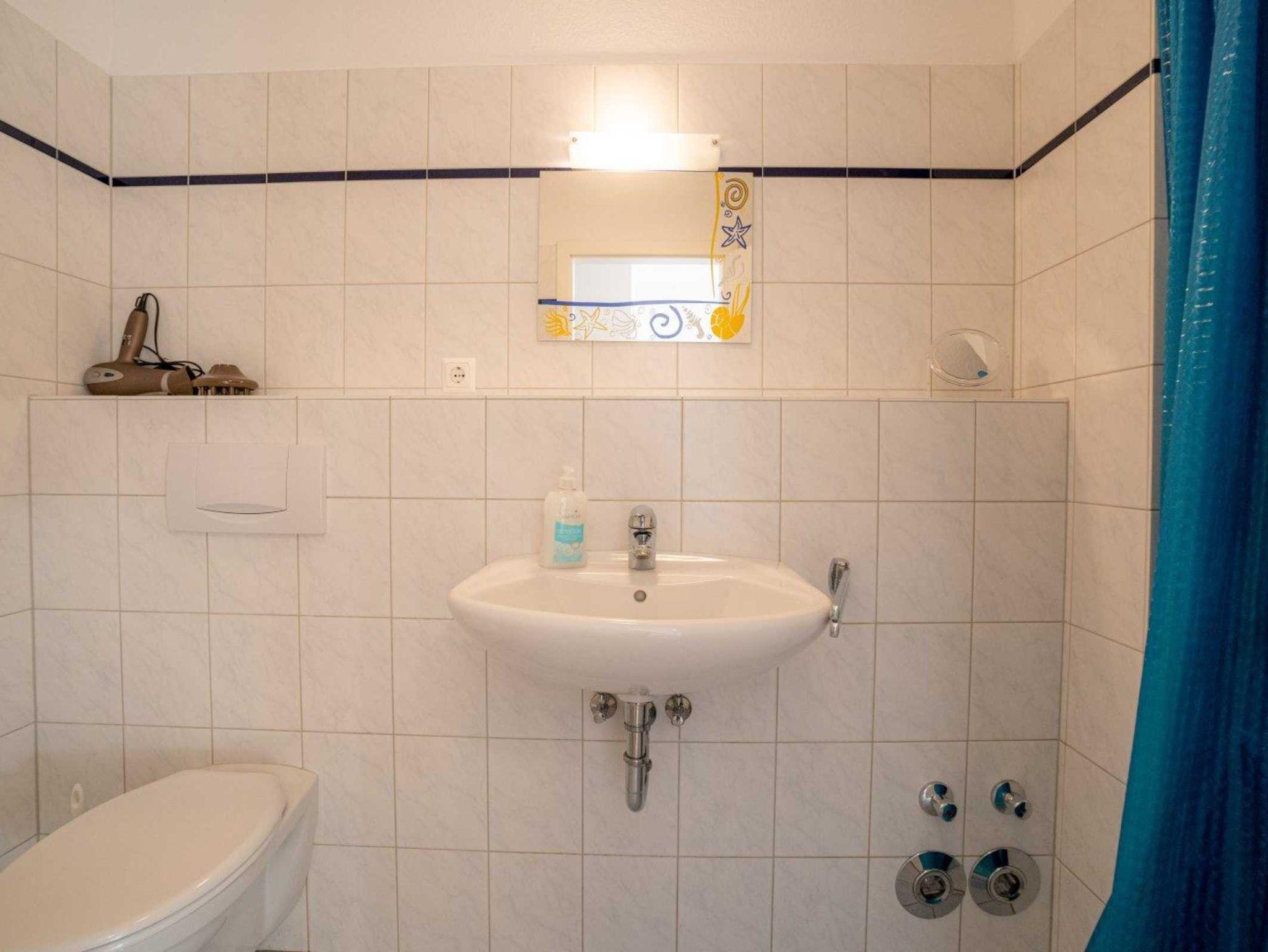 Badezimmer (Duschbad) mit Dusche, WC und Föhn.