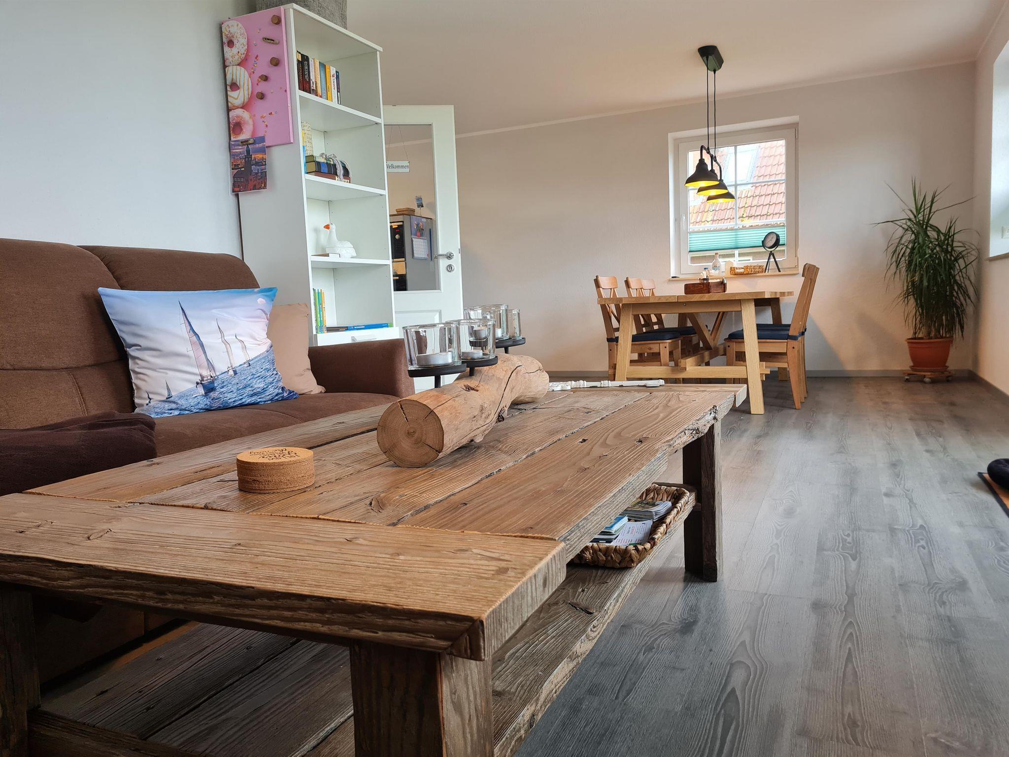 Im Wohnbereich finden Sie ein ausreichend großes Ecksofa, Couchtisch und einen Fernseher.