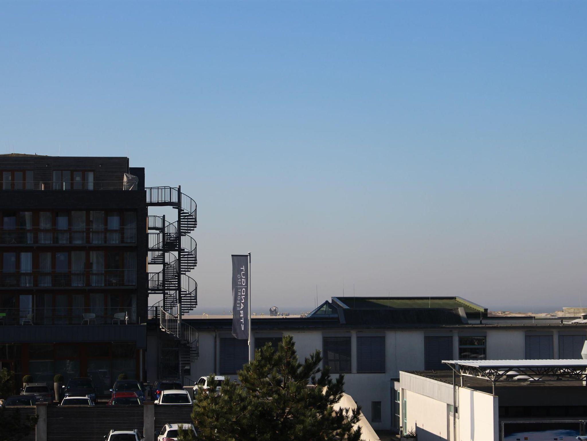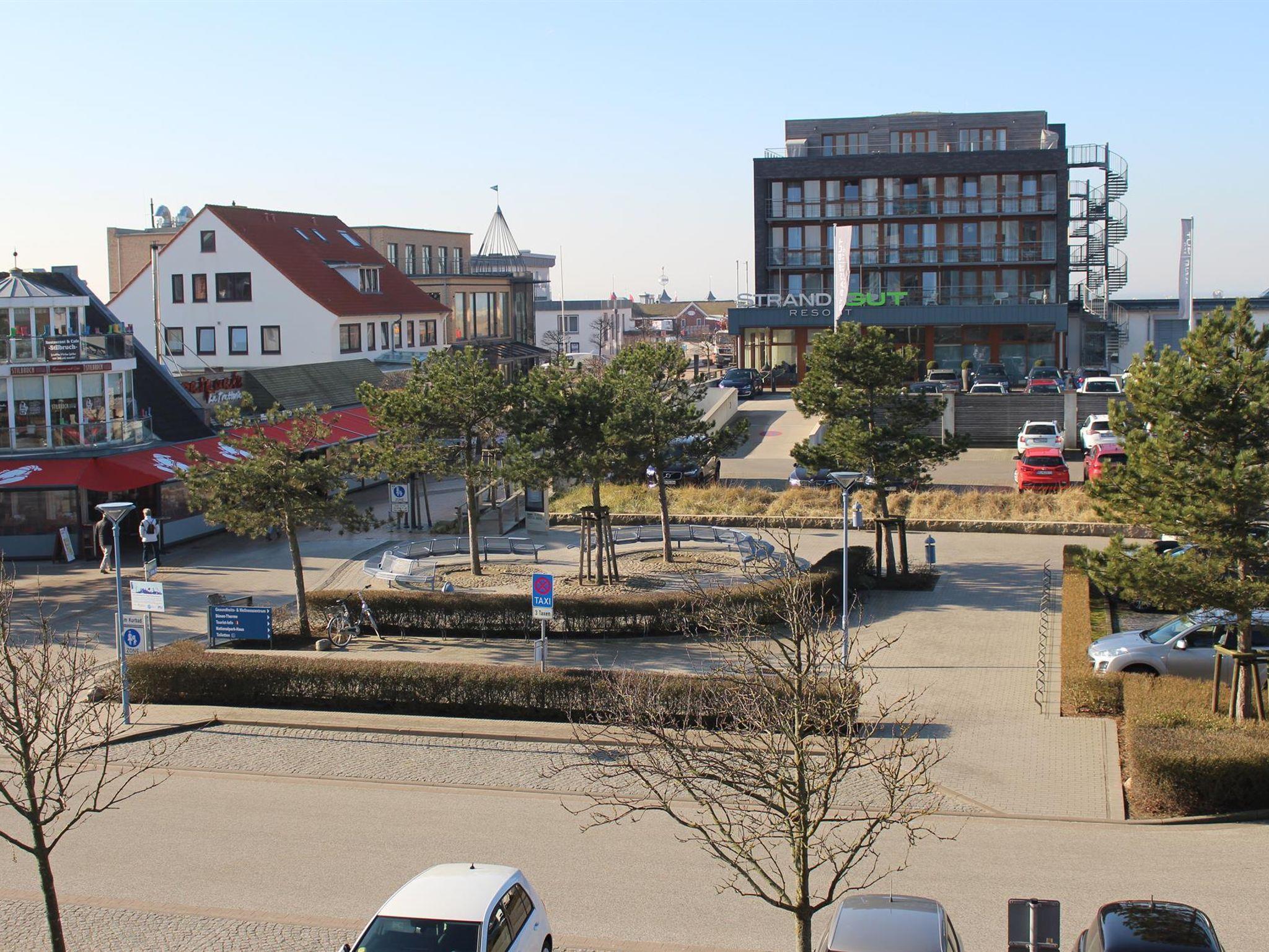 gegenüber der Dünentherme mit Sauna, Meerwasserwellenbad und Erlebnisbad.