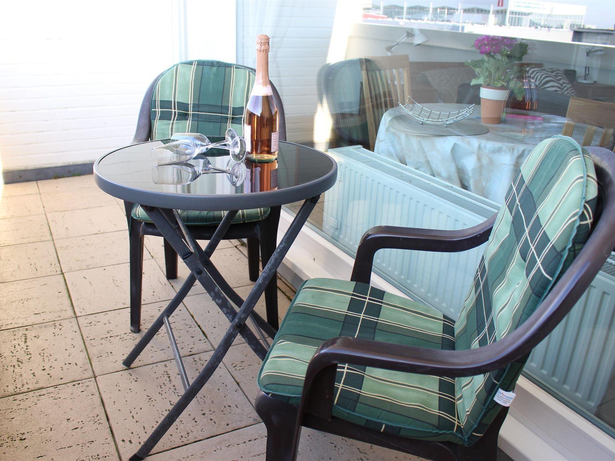 Lassen Sie den Abend gemütlich auf dem Balkon in der 2.ten Etage bei Sonnenuntergang über der Nordsee ausklingen.