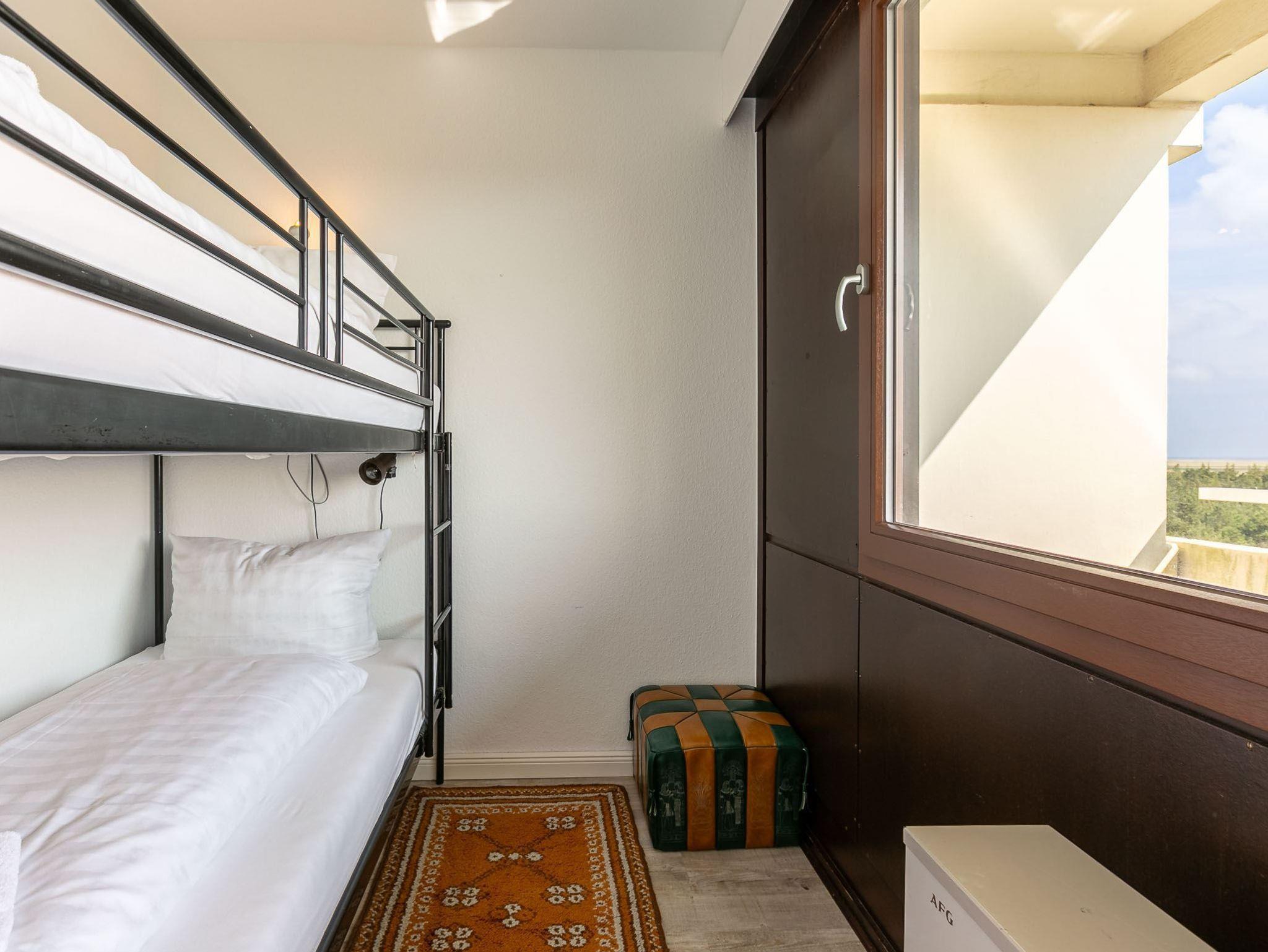 2. Schlafzimmer mit 2 Etagen-Einzelbetten (je 90x200cm) und Meerblick.