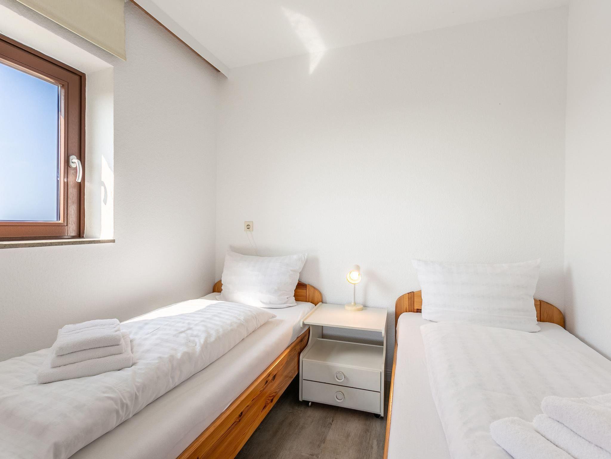 1. Schlafzimmer mit 2 Einzelbetten (je 90x200cm) und Meerblick.