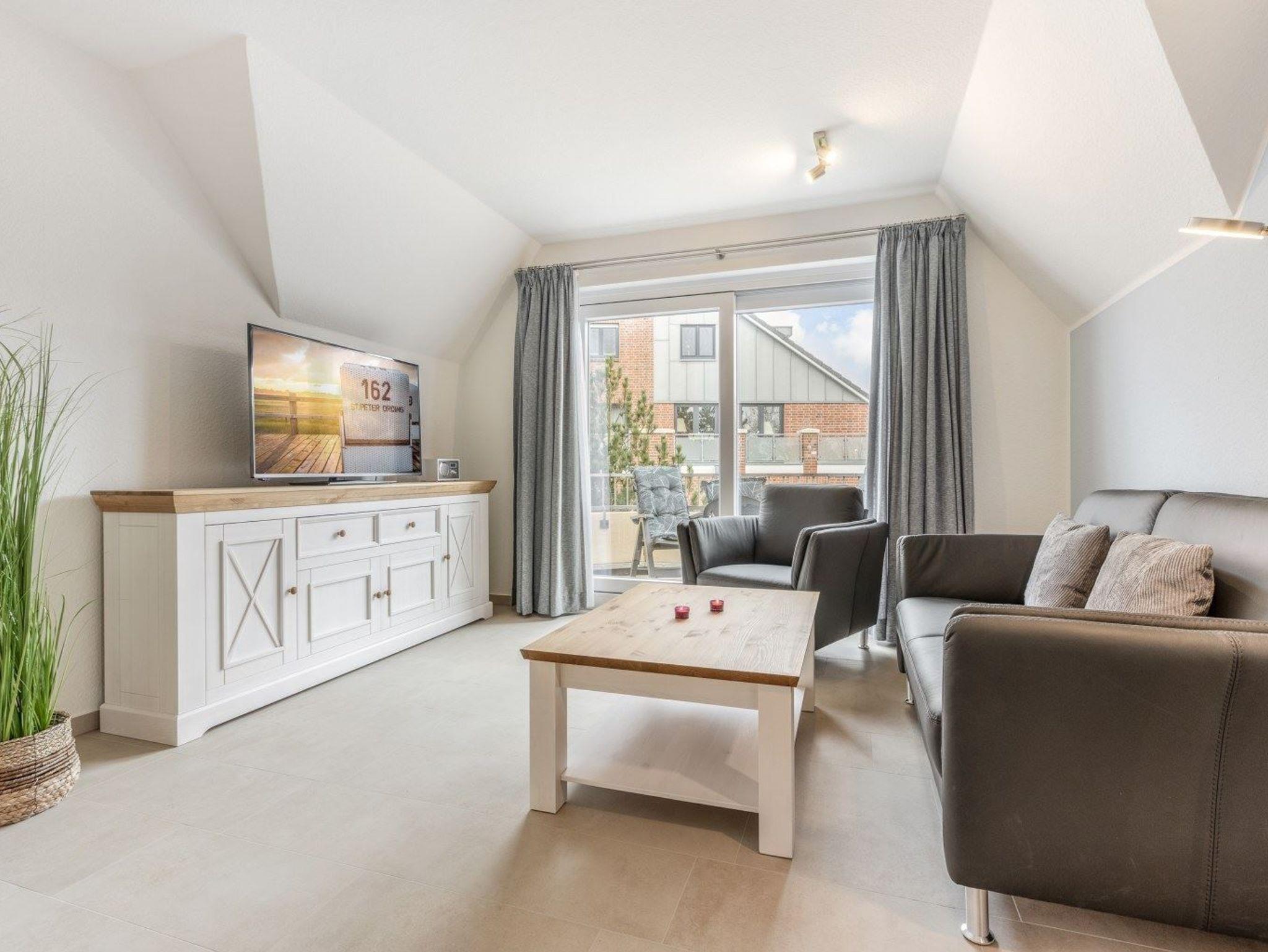 Schöne, helle 2 1/2-Zimmer-Ferienwohnung im Haus Dreilanden mit ca. 55 m² auf 1 Ebene (2. OG) für bis zu 3 Personen. In einer der begehrtesten, weil ausgesprochen zentralen Lage im Ortsteil Bad in St. Peter-Ording. Das Kurzentrum beginnt buchstäblich vor der Haustür und somit sind alle Restaurants und Geschäfte, die Dünentherme sowie die Seebrücke zum Strandabschnitt in wenigen Minuten bequem und schnell zu Fuß erreichbar. Ein Spitzendomizil in Bestlage.