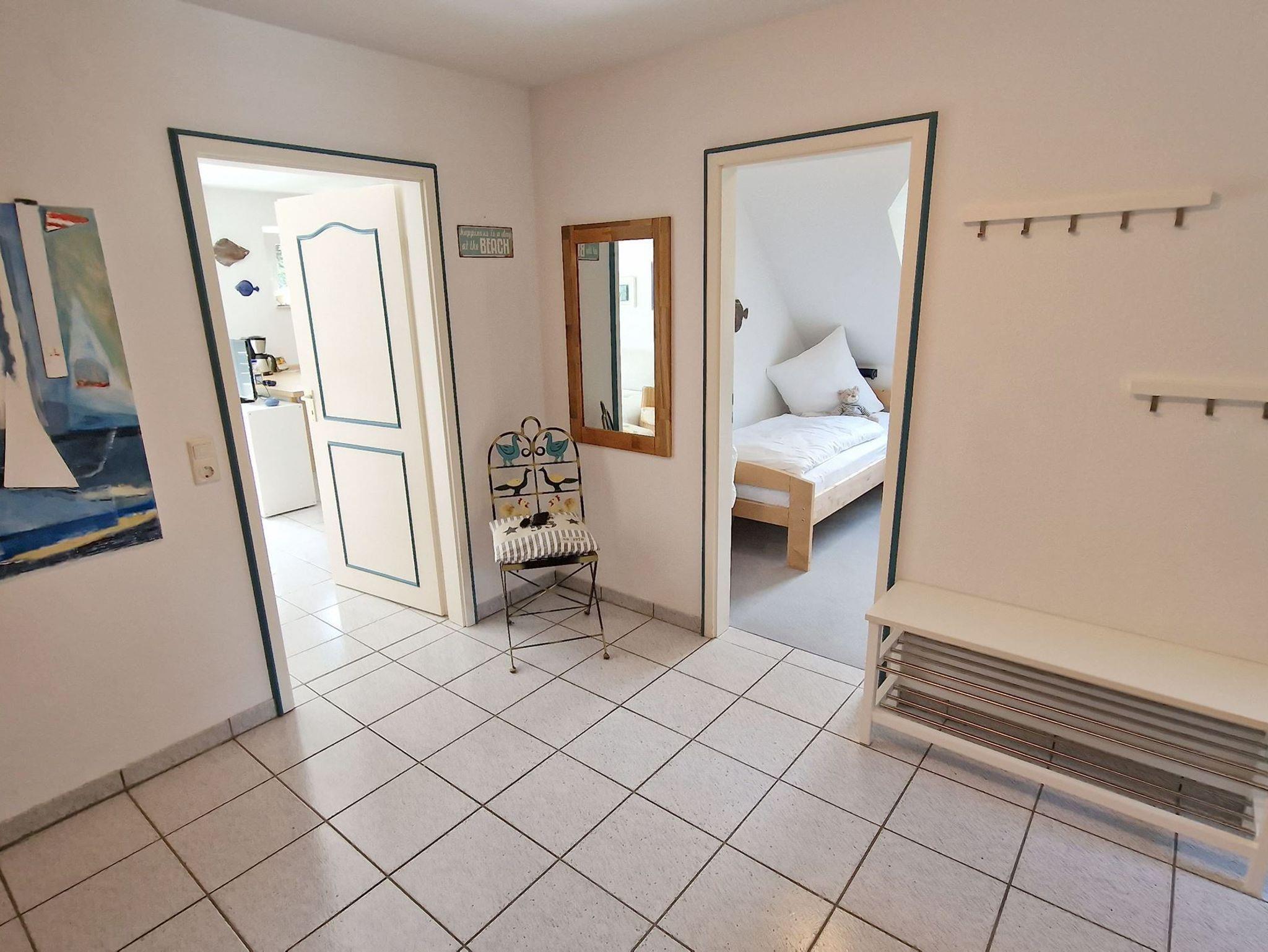 Das 60 Quadratmeter große Ferien-Appartement ist für einen Urlaub an der Nordsee die ideale Ruhe-Oase. Dazu passt der Spruch Ihres Domizils ideal: Gönne dir einen Augenblick der Ruhe und achte auf das, was dir Freude macht. Bis zu vier Personen können es sich hier gut gehen lassen. Das Urlaubsdomizil ist hell und modern eingerichtet und liegt im 2ten Obergeschoß. Frische Farben, Bilder und Accessoires sorgen für Akzente. Das Wohnzimmer ist großzügig geschnitten, bietet viel Platz zum Kuscheln auf dem Sofa. Genießen Sie darüber hinaus den großen Südbalkon oder essen Sie entspannt am Esstisch. Die Küche ist offen und mit Geräten wie Herd, Kühlschrank, Spülmaschine, Toaster etc. voll ausgestattet. Den großen Südbalkon mit Strandkorb können Sie vom Wohnzimmer aus betreten. Ob beim Sonnenbaden im Strandkorb oder beim Frühstück im Freien ? die frische Nordseeluft erfrischt so oder so Körper und Seele. Großer Fahrradkeller, Stellplatz Nr.05 & WLAN sind ebenfalls kostenlos enthalten.