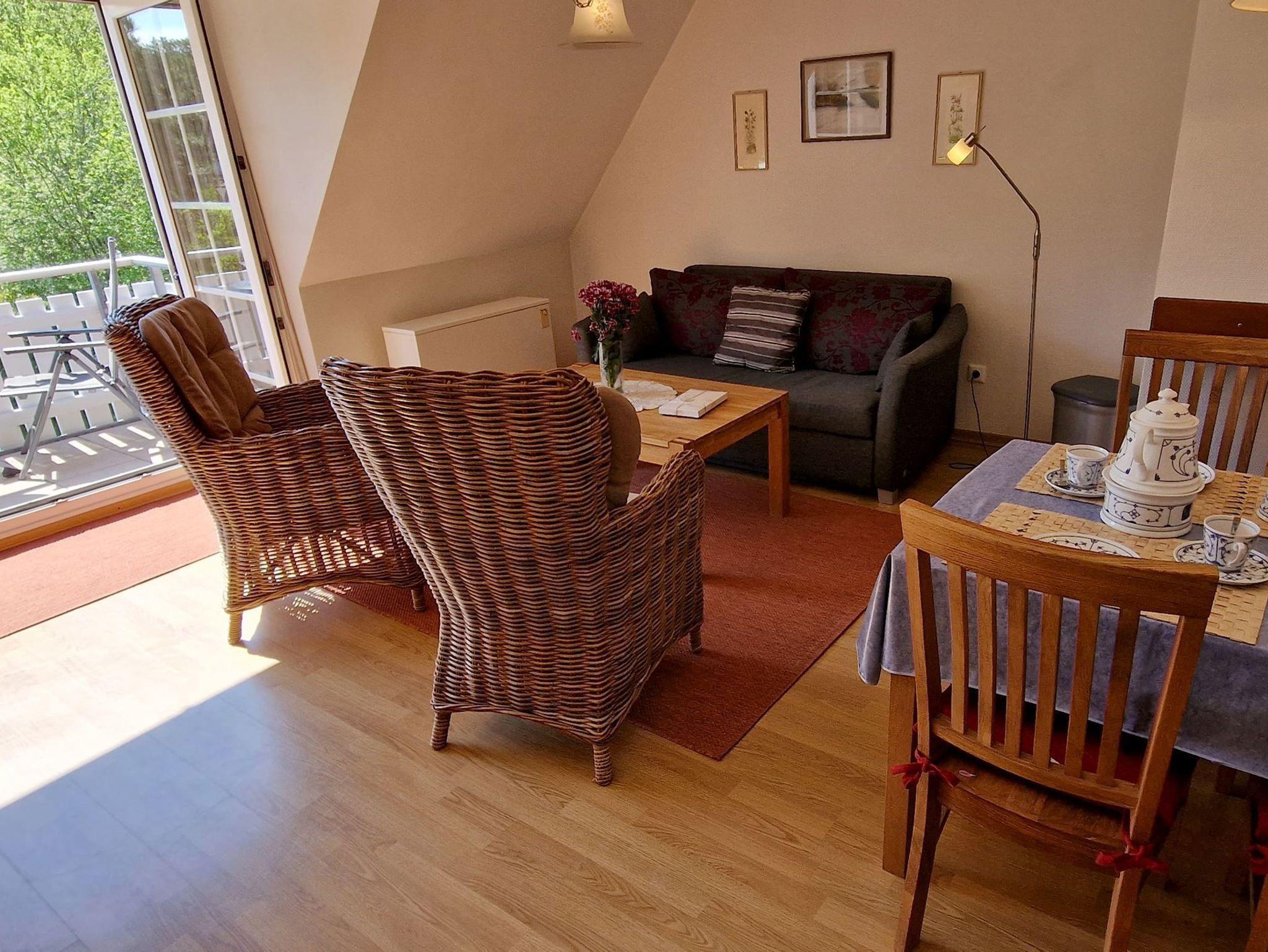 Dachgeschoss: Der lichtdurchflutete Raum im Dachgeschoss ist mit 2 Einzelbetten und einer Couchgarnitur ausgestattet, ideal für zusätzliche Entspannung.