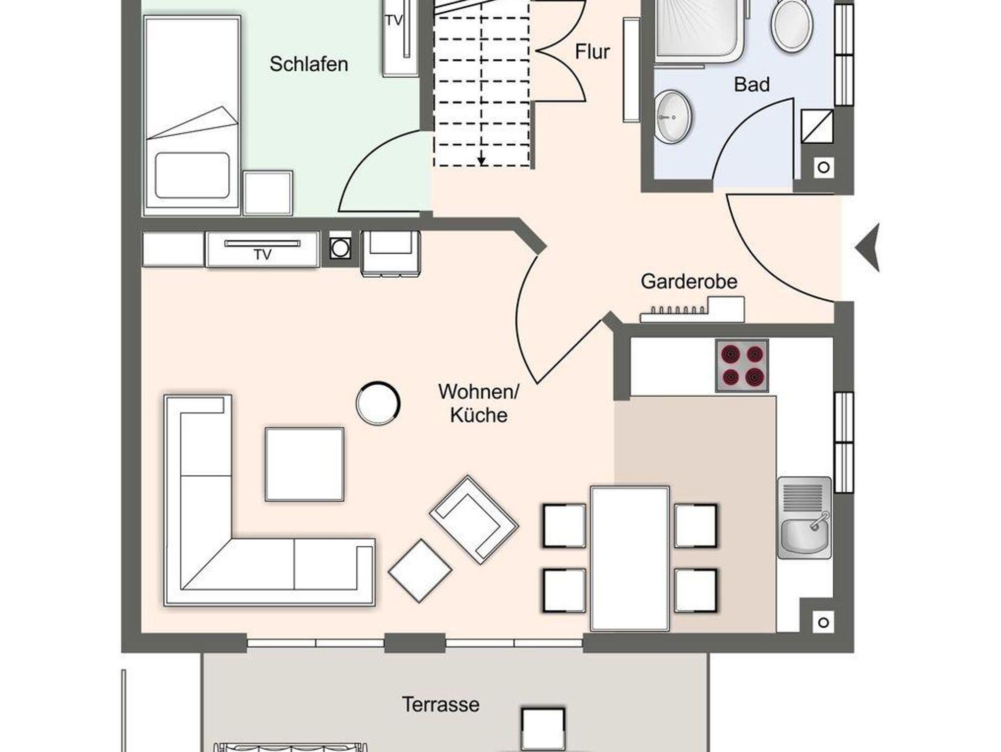 5 Minuten Fußweg zum idyllischen Dorfkern mit gemütlichen Cafés, Restaurants und Shops u.a. EDEKA Markt. Ebenfalls 5 Minuten Fußweg bis in die Dünen mit deren einzigartiger Natur.