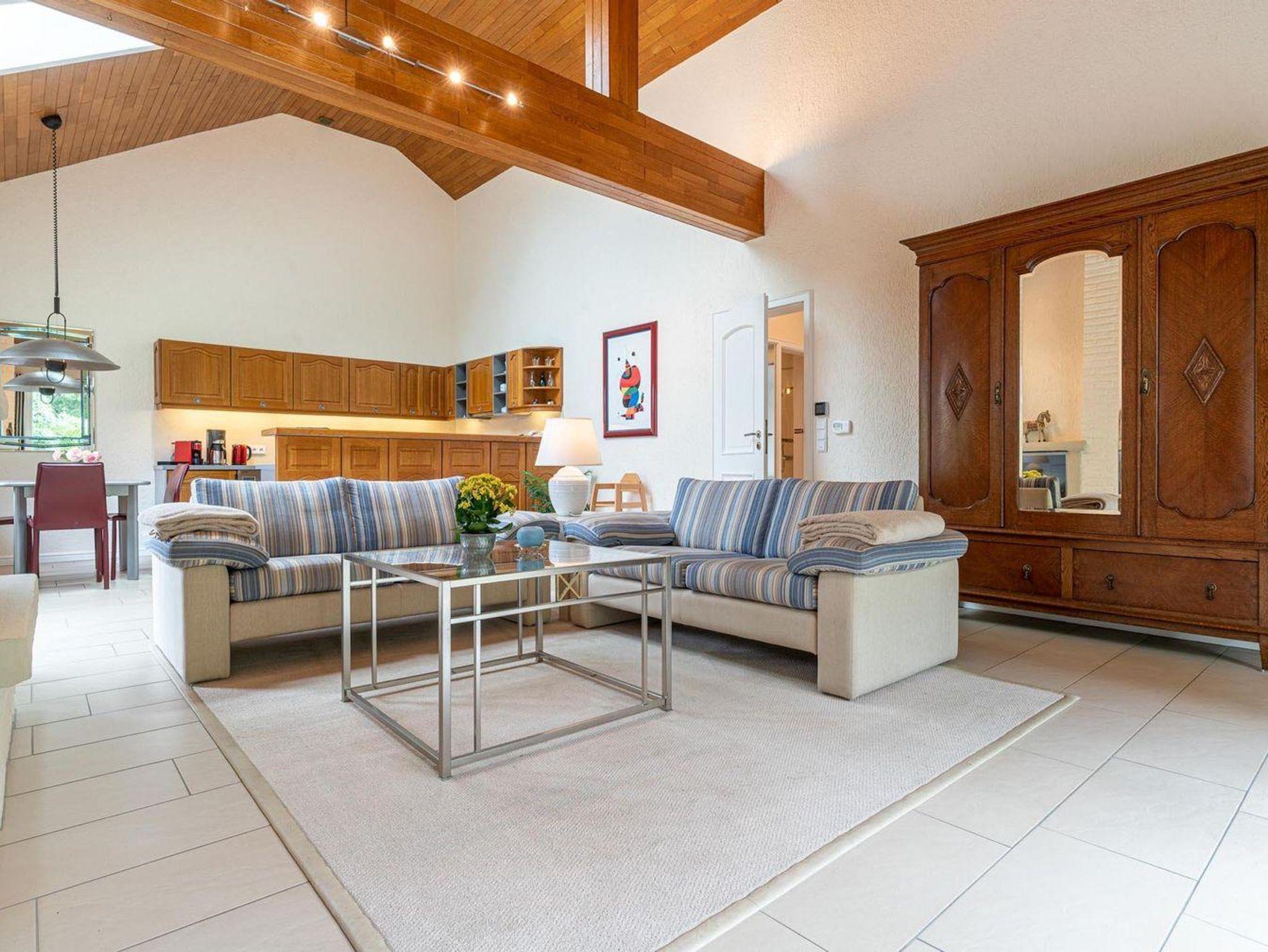Die Bungalowhaushälfte verfügt über ca. 85m² Wohnfläche und teilt sich wie folgt auf: Im Erdgeschoss befindet sich der großzügige Wohnraum mit offener Balkendecke und einer Wohnküche mit Essbereich. Im Erdgeschoss ist ebenso ein Duschbad und ein Flur mit einer Garderobe von hier aus gelangen Sie jeweils ins Doppelschlafzimmer. Ein Schlafzimmer ist mit einem Doppelbett und ein weiteres mit 2 Einzelbetten ausgestattet. Vom Wohnzimmer gelangen Sie auf die Terrassen mit Blick in den wunderschön eingewachsenen Garten.