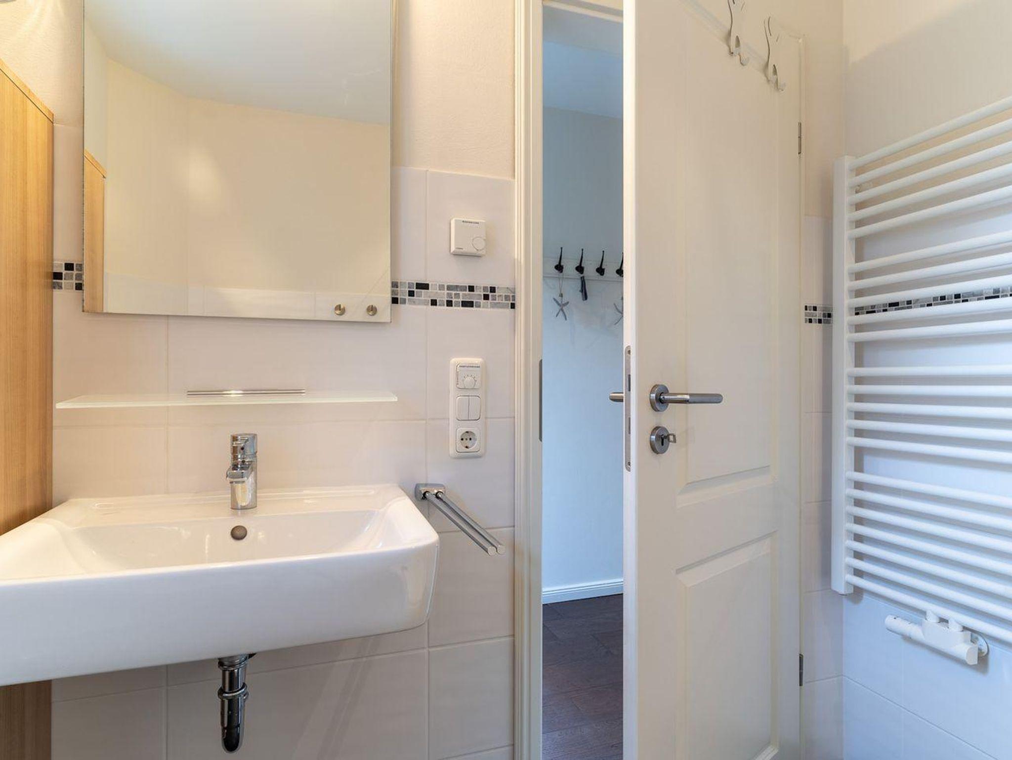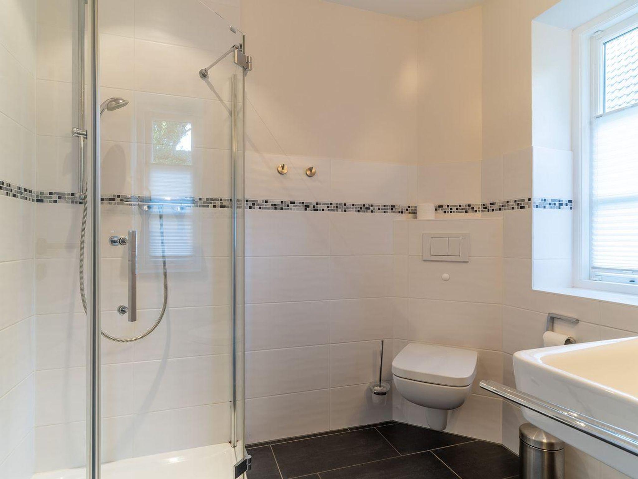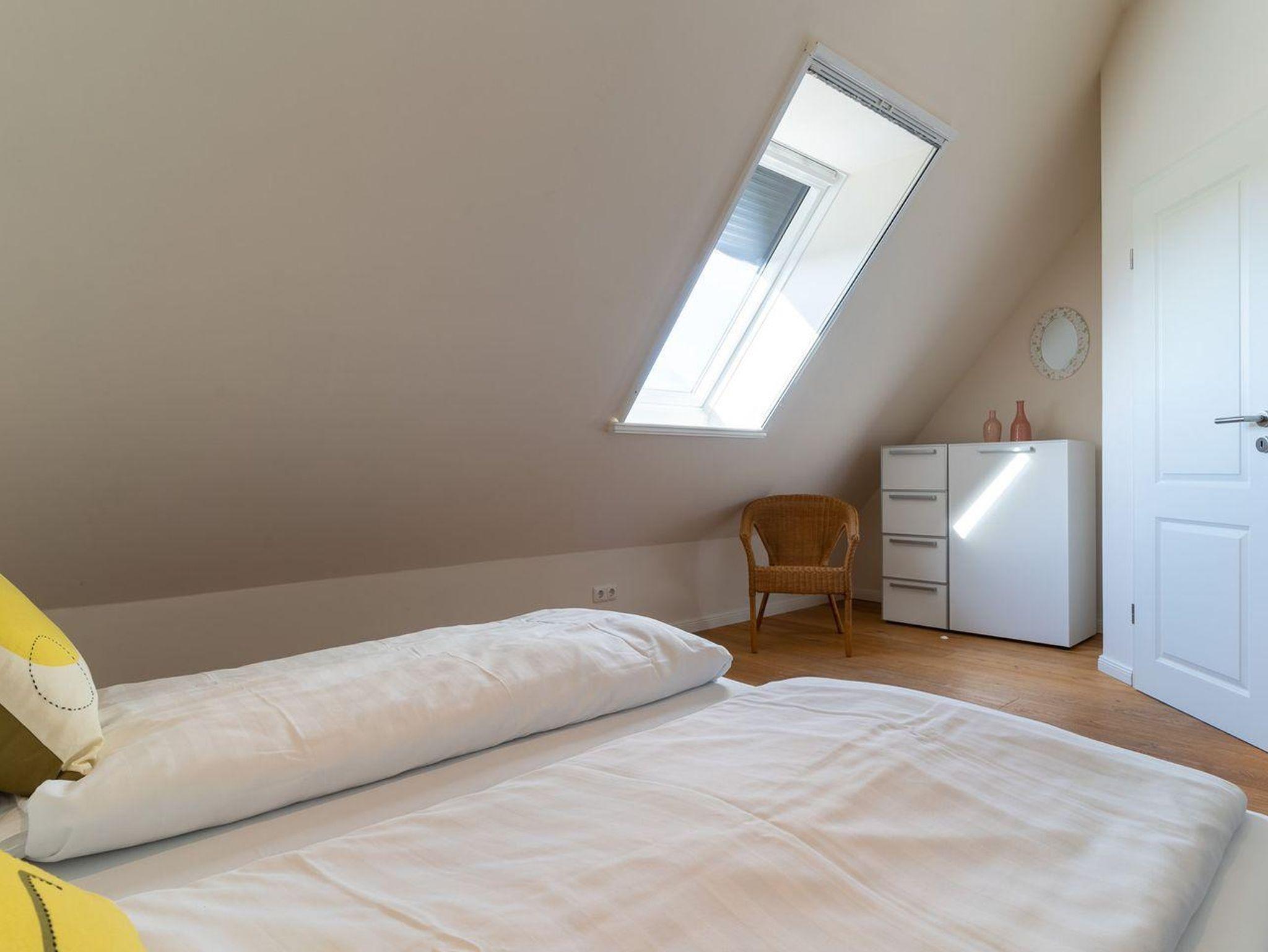 Im Erdgeschoss befindet sich der lichtdurchflutete Wohnraum mit TV, Kamin, einer offenen Küche sowie einem stilvollen Essbereich. Die Küche verfügt über hochwertige Elektrogeräte. An den Wohnbereich schließen sich ein Flur, ein Duschbad und ein Abstellraum. Über eine Holztreppe gelangen Sie in das Obergeschoss mit zwei großzügigen Schlafzimmern, ein Doppelschlafzimmer und ein Schlafzimmer mit zwei Einzelbetten. Die Schlafzimmer sind mit geräumigen Schränken ausgestattet, in einem finden Sie zudem einen Schreibtisch an dem es sich prima von Zuhause aus arbeiten lässt. Darüber hinaus befindet sich im Obergeschoss ein weiteres, geräumiges Bad mit Dusche und einer Eckbadewanne. Über eine weitere Holztreppe geht es vom Flur ins Dachgeschoss mit einem gemütlichem Doppelbett. Im Erd- und Obergeschoss sorgt eine Fußbodenheizung für ein angenehmes Raumklima.
