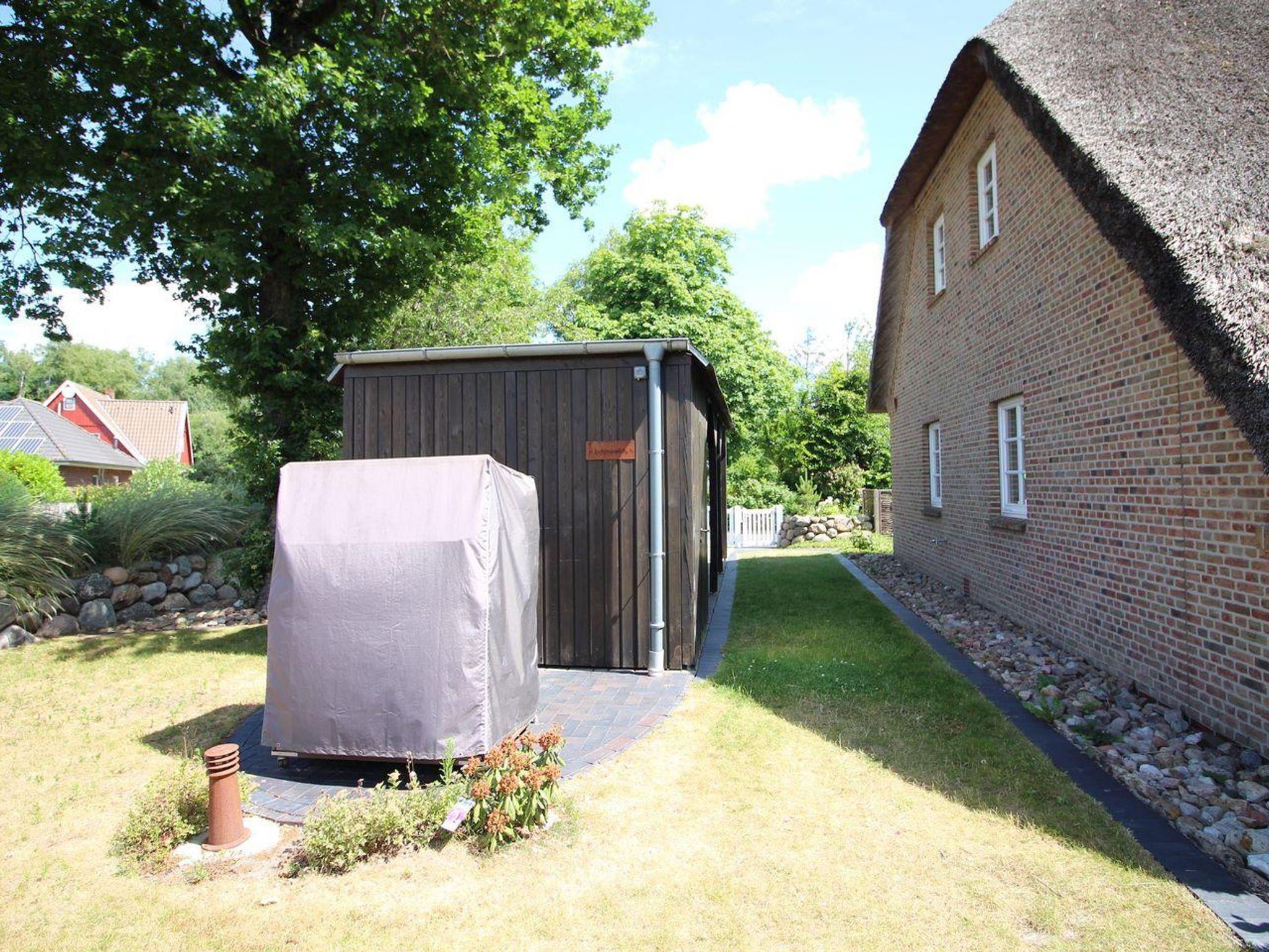 Im Außenbereich gibt es einen abschließbaren Fahrradschuppen.
