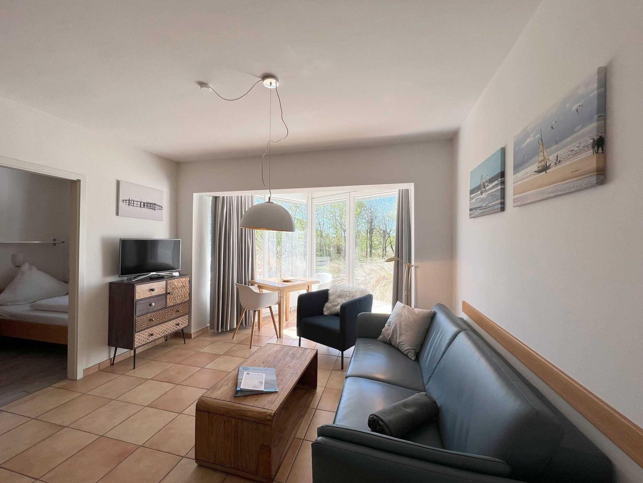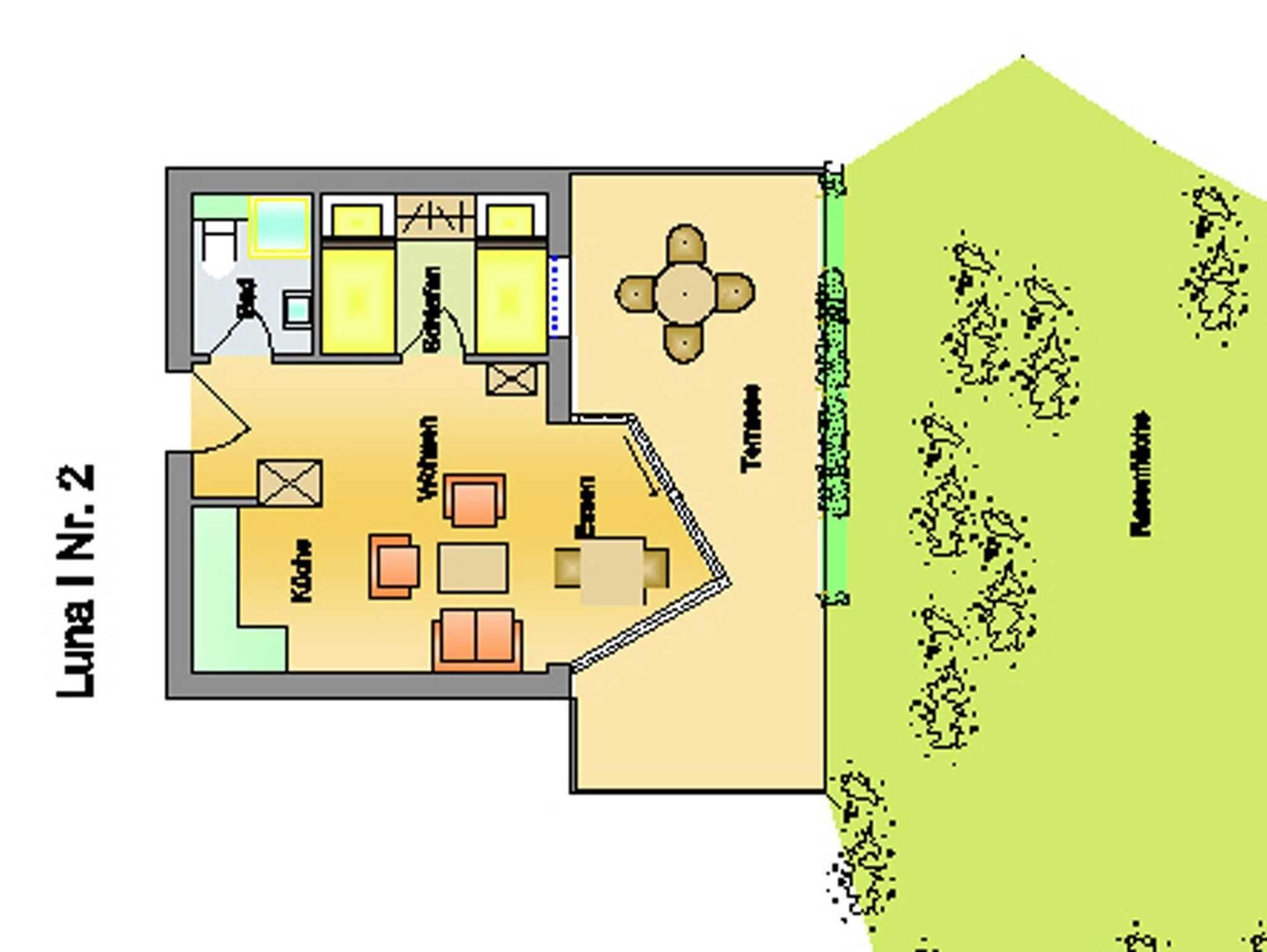 Die Wohnung 2, im Haus Luna I, liegt im Erdgeschoß und ist für 1 - 2 Personen ein herrliches Urlaubsquartier. Im Eingangsbereich finden Sie eine Garderobe und 1 Duschbad mit WC und Waschbecken. Der gemütliche Wohn-Essbereich verfügt über eine offene, umfangreich ausgestattete Küche, in der auch das Kochen im Urlaub Spaß macht. Der Essbereich befindet sich im hellen, vorgelagerten Wintergarten, wo Sie einen direkter Zugang zur Terrasse mit Strandkorb und Gartenmöbeln haben. Hier lässt es sich wunderbar in guter Nordseeluft entspannen. Erholsamen Schlaf bekommen Sie im Schlafzimmer mit 2 Einzelbetten (90x200cm).
