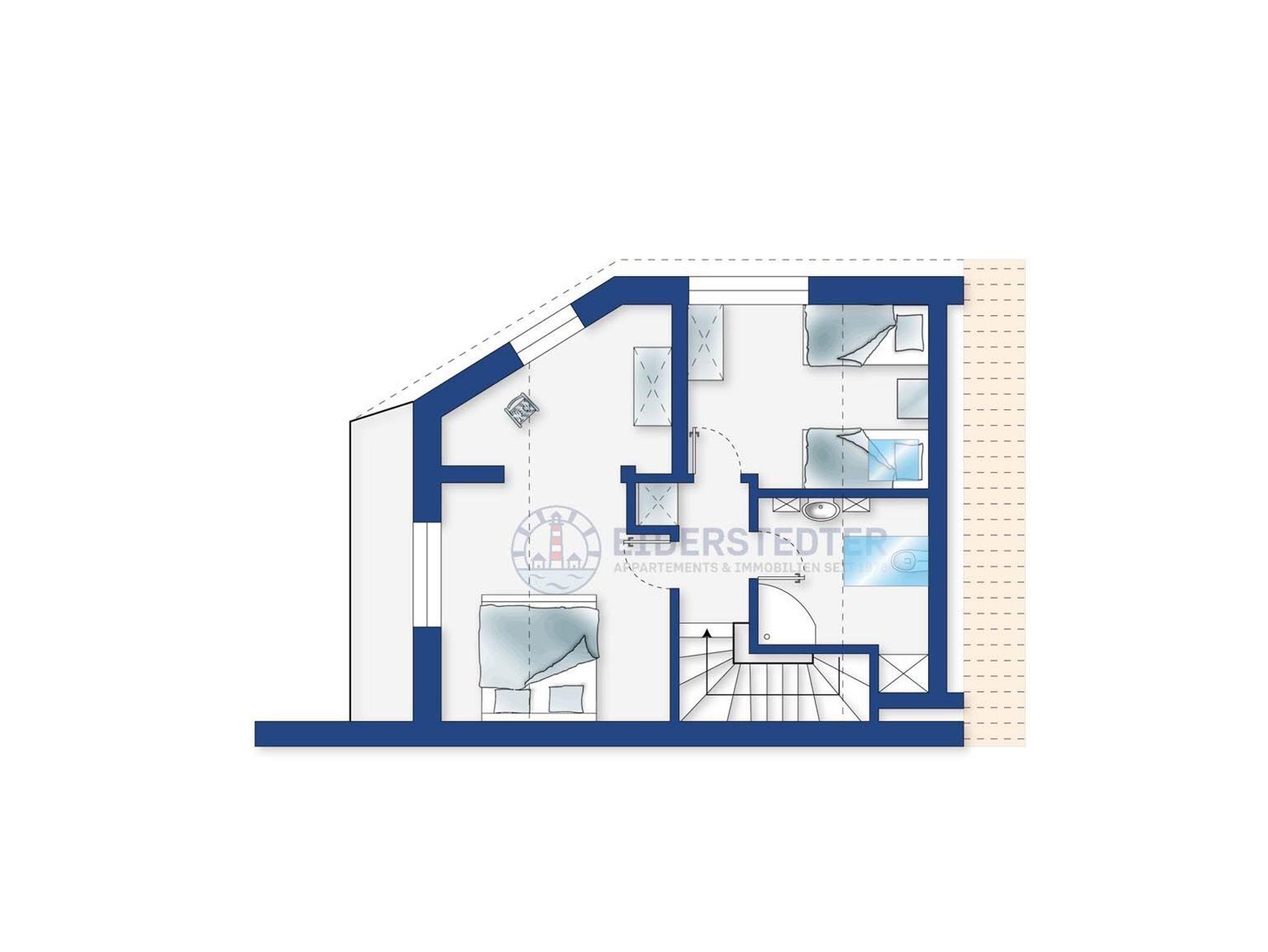 Komfortabel eingerichteter Ferien-Endhausteil Weitsicht mit 3 Zimmern und ca. 80 m² auf 2 Ebenen (EG, OG) für bis zu 4 Personen. In zentrums- und zugleich naturnaher Lage unweit des Marktplatzes mit herrlichem Weitblick über grüne Landschaften im Ortsteil Dorf in St. Peter-Ording.