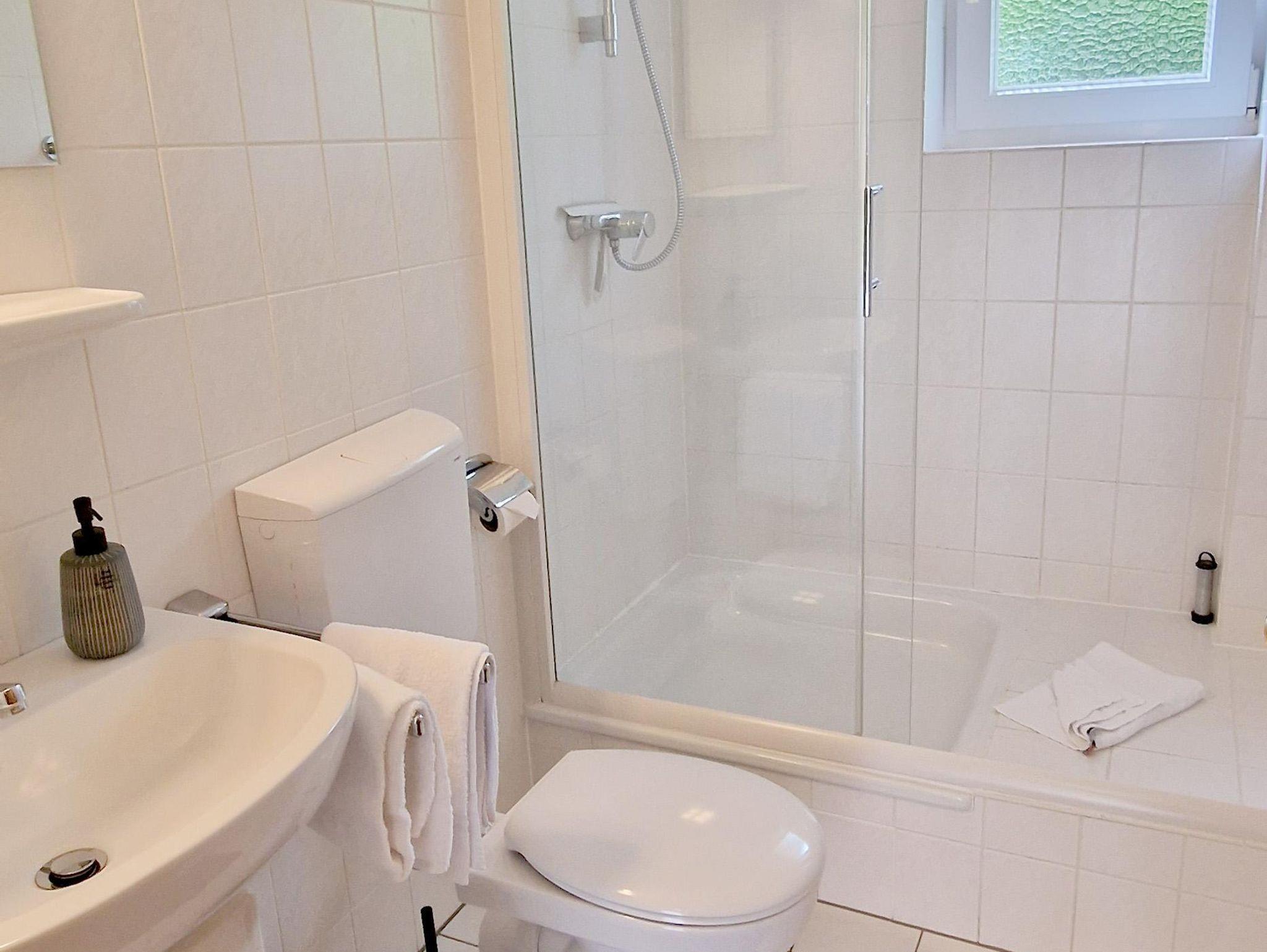 Bad: Dusche, Waschbecken, WC, Duschkabine