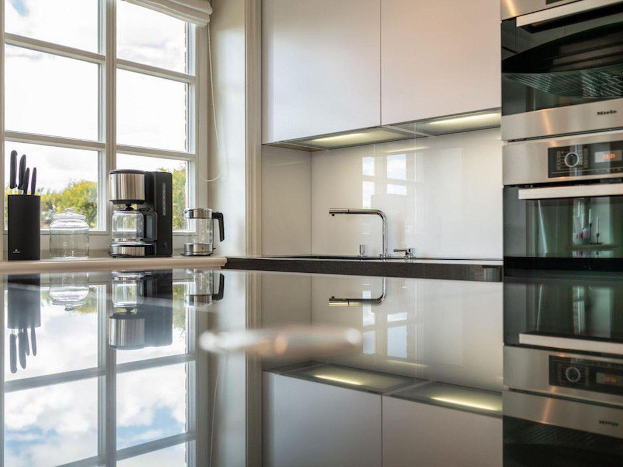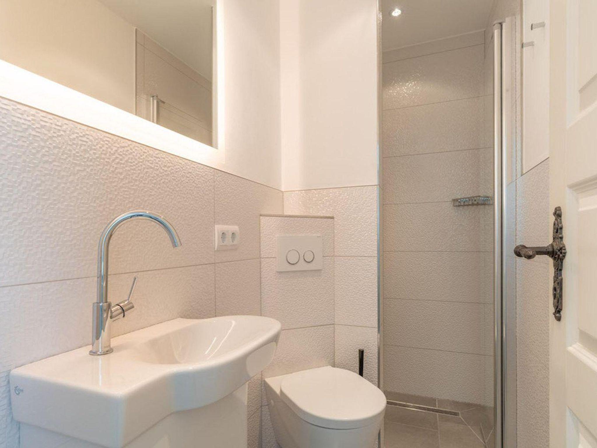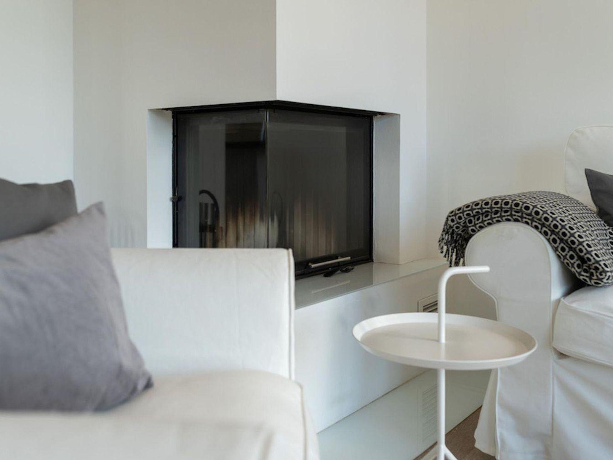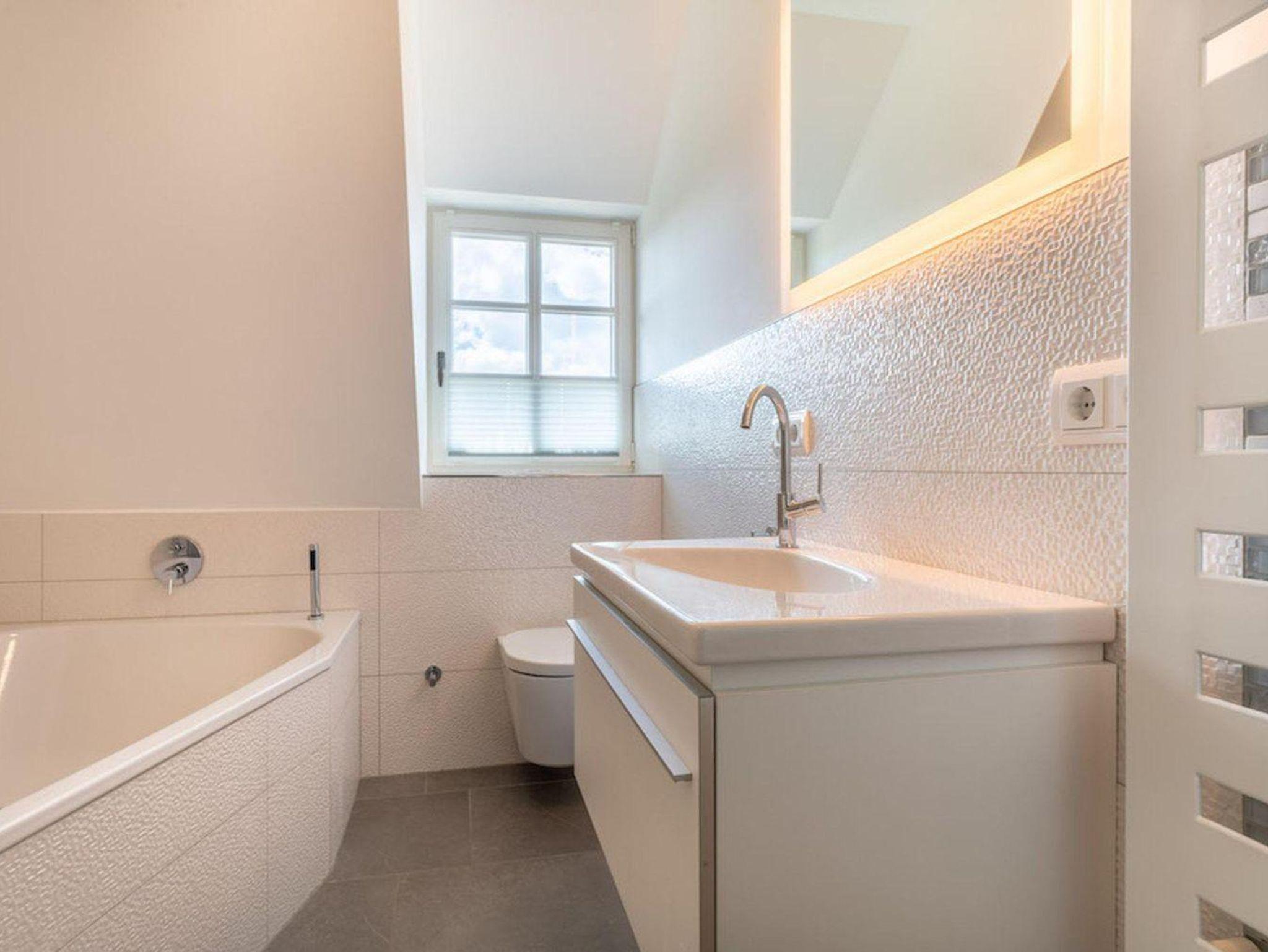 Im Erdgeschoss befindet sich der lichtdurchflutete Wohnraum mit TV, einer offenen Küche sowie einem stilvollen Essbereich. Der Wohnraum ist mit stylischen Möbeln, Kamin und hochwertigem Parkett ausgestattet. Die voll ausgestattete Küche verfügt über hochwertige Elektrogeräte, allerlei nützliches und schönes Equipment lässt bei Hobbyköchen keine Wünsche offen. An den Wohnbereich schließen sich Flur, Hauswirtschaftsraum und ein Duschbad an. Über eine Holztreppe gelangt man in das ebenso mit Parkett ausgelegte Obergeschoss. Die beiden Schlafzimmer, eines mit einem Doppelboxspringbett und ein weiteres mit 2 Einzelboxspringbetten sorgen für ruhevolle Erholung. Einbauschränke gewähren Ihnen hinreichend Ablageflächen. Darüber hinaus befindet sich im Obergeschoss ein weiteres, geräumiges Bad mit Dusche und großer Eckbadewanne.