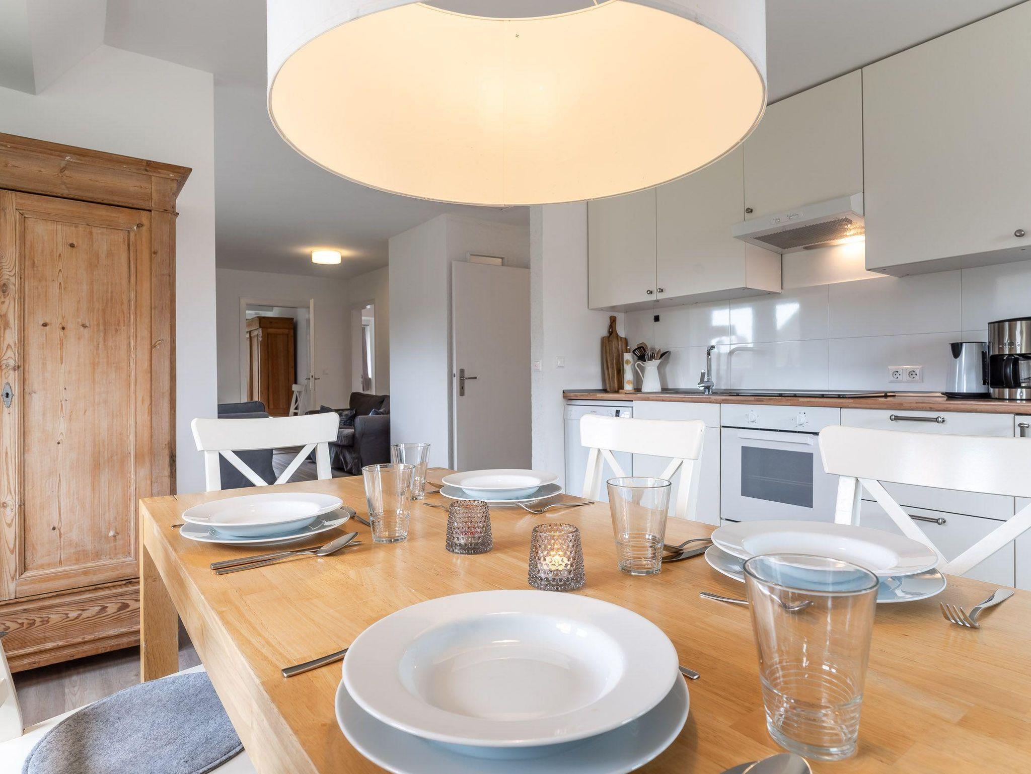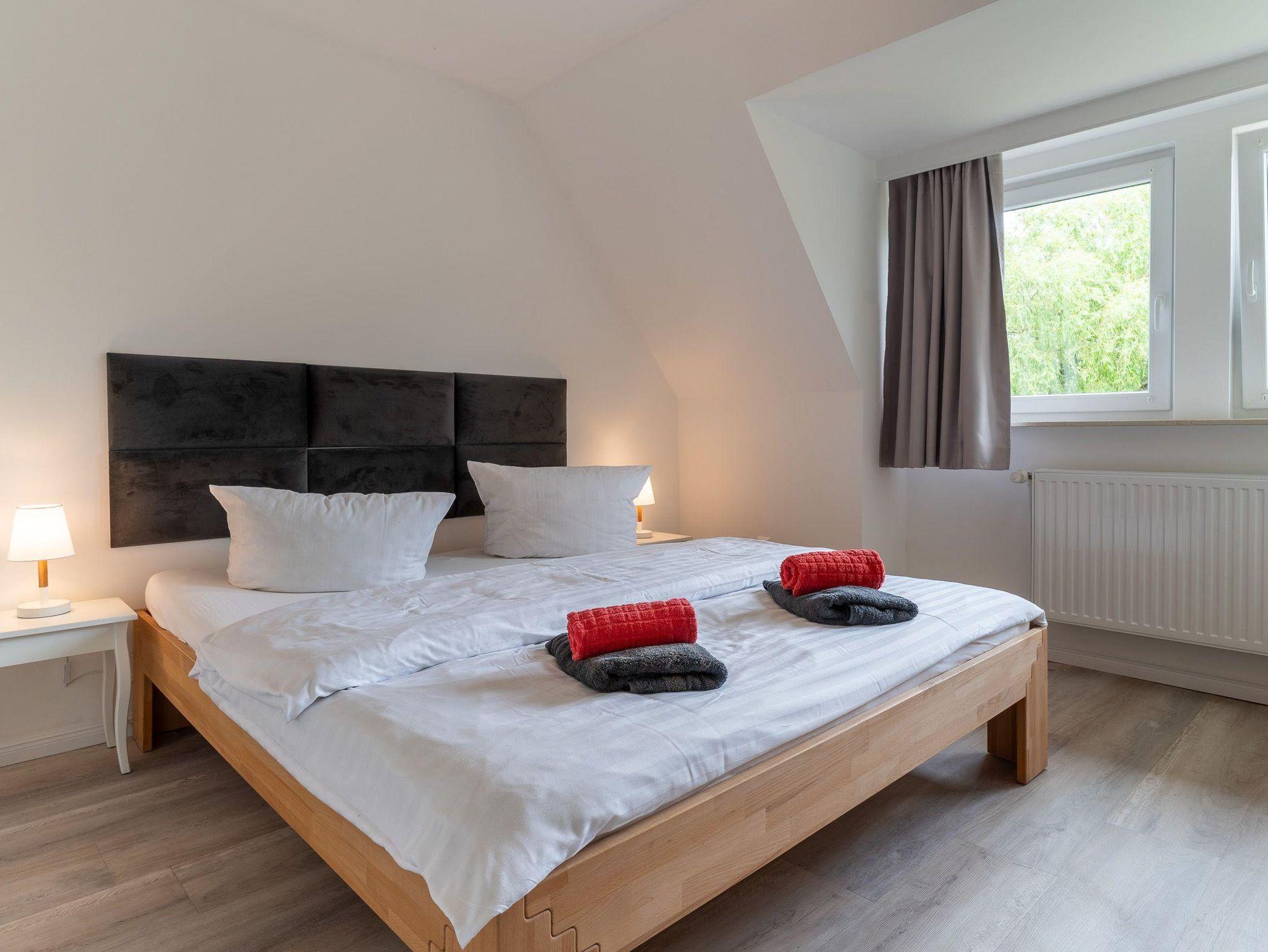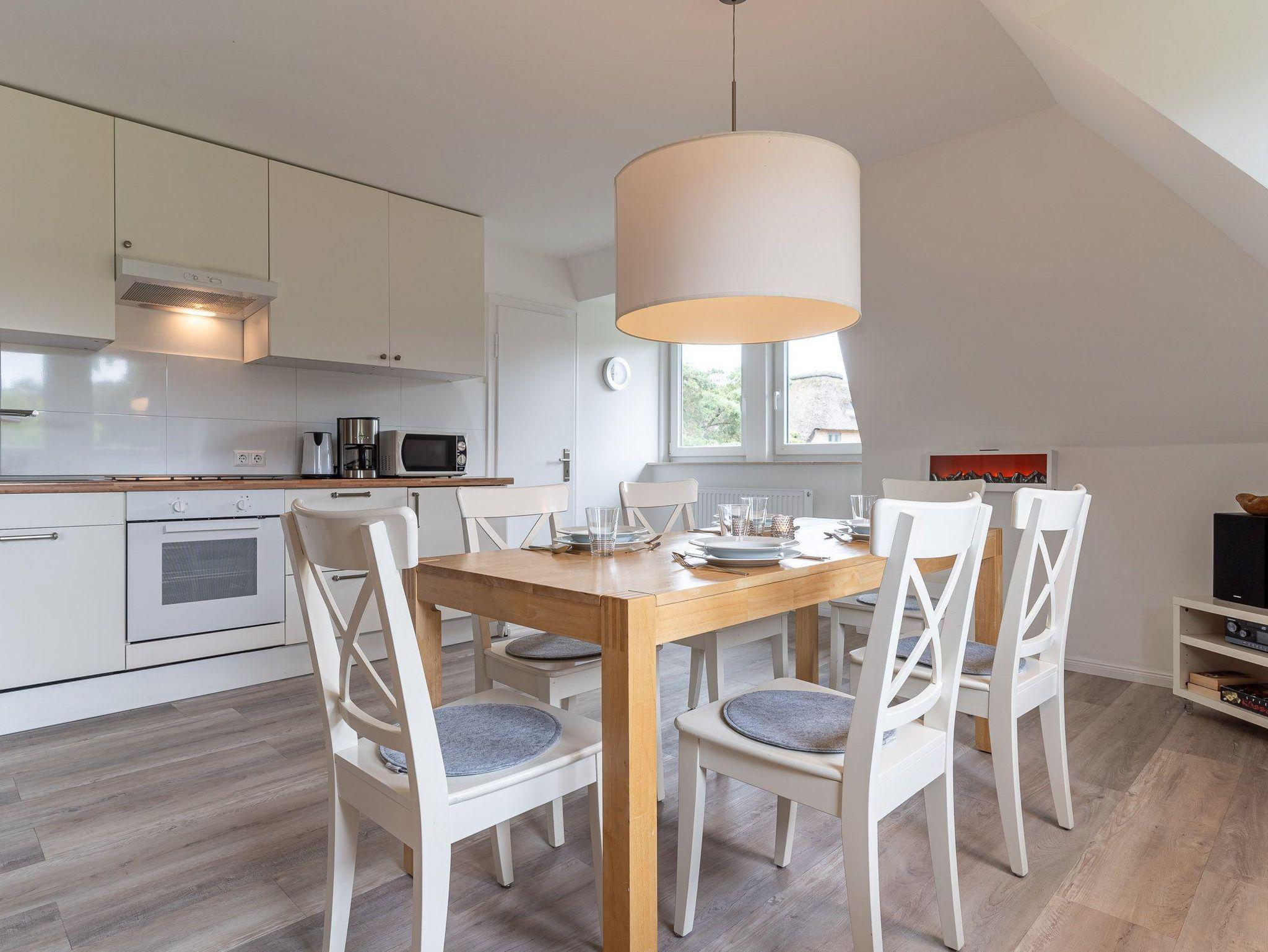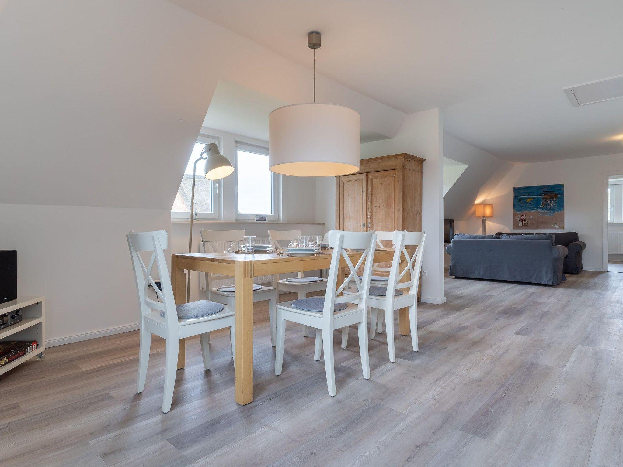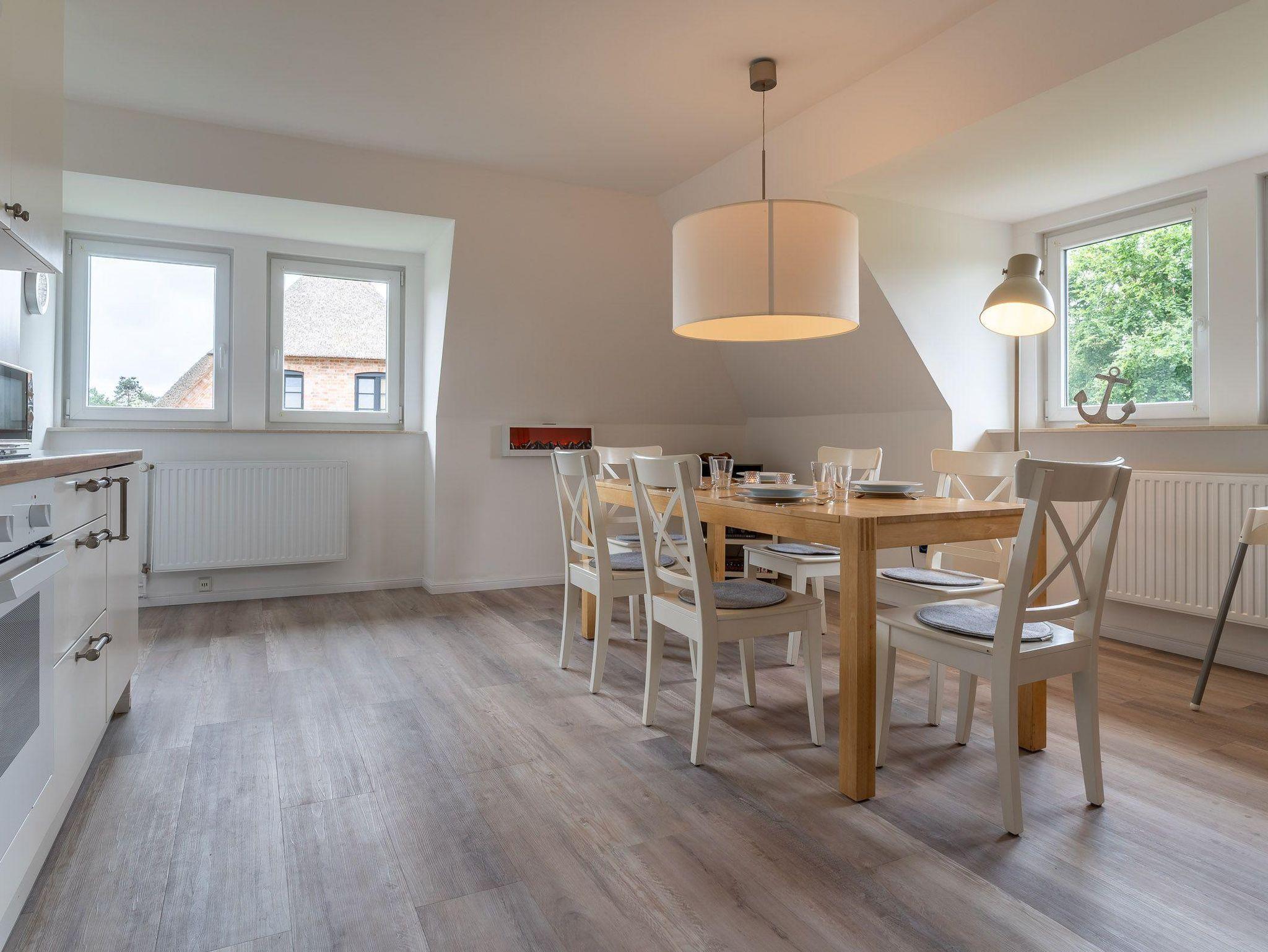 Die Wohnung liegt im stillen Dorf in einem Ende 2018 neu reetgedeckten Haus. Das Appartment verfügt über 3 vollwertige Zimmer mit zwei Doppelbetten und zwei Einzelbetten. Es hat ebenfalls zwei Duschbäder.