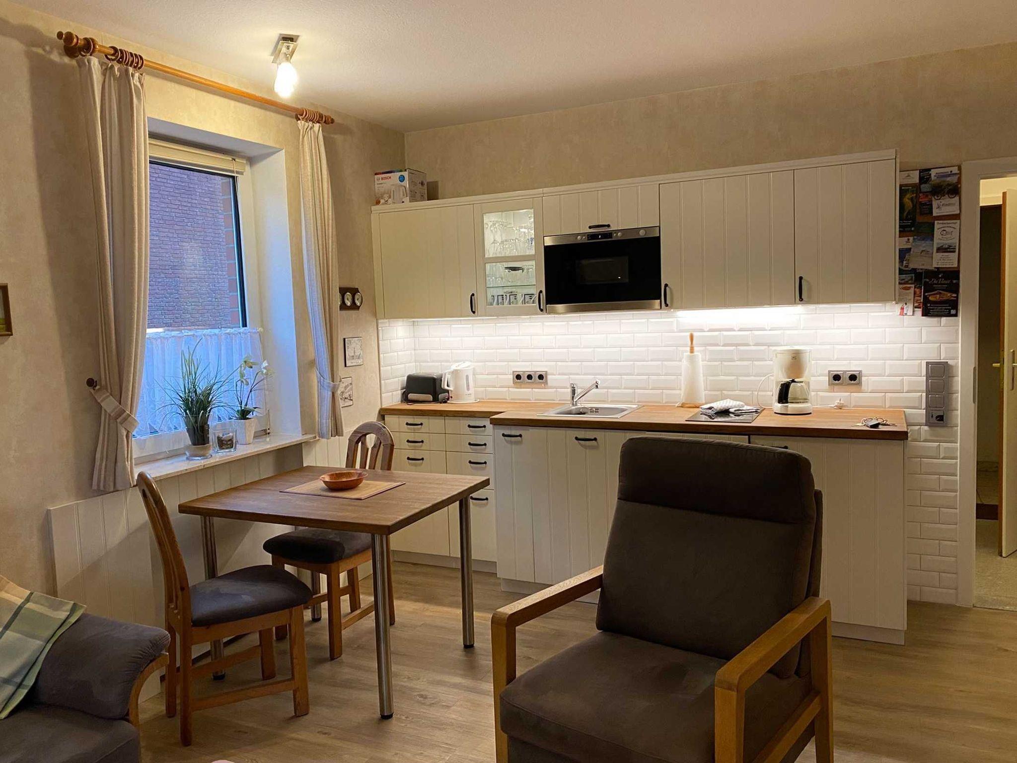 Urlaub für 2! Die 1-Zimmer-Ferienwohnung in St. Peter-Bad befindet sich im Erdgeschoss. Aus dem gemütlich eingerichteten Wohnbereich treten Sie direkt auf die halb überdachte Terrasse in Nord-West-Lage Die helle, offene Küche ist für 2 Gäste gut ausgestattet. Nachts träumen Sie herrlich in einem kuscheligen Doppelschrankbett. Zum Frühstück können Sie sich beim Bäcker um die Ecke täglich 2 Brötchen pro Person unentgeltlich abholen. Guten Appetit. Pkw-Stellplatz auf dem Grundstück, Nr. 1