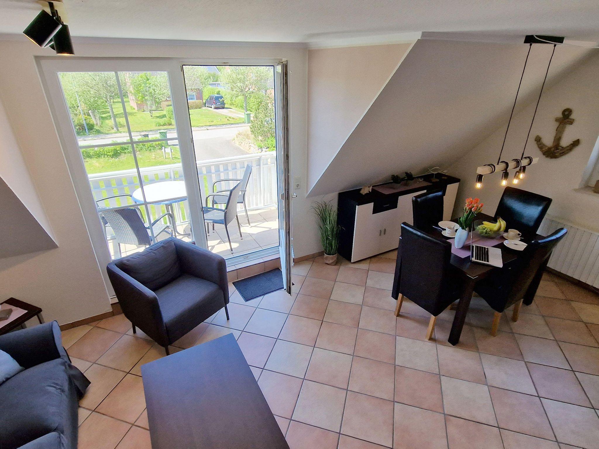 Die im ersten Stock gelegene Wohnung mit zwei Schlafräumen bietet Platz für 4 Personen. Sie hat einen schönen Balkon in Westlage, auf dem man abends