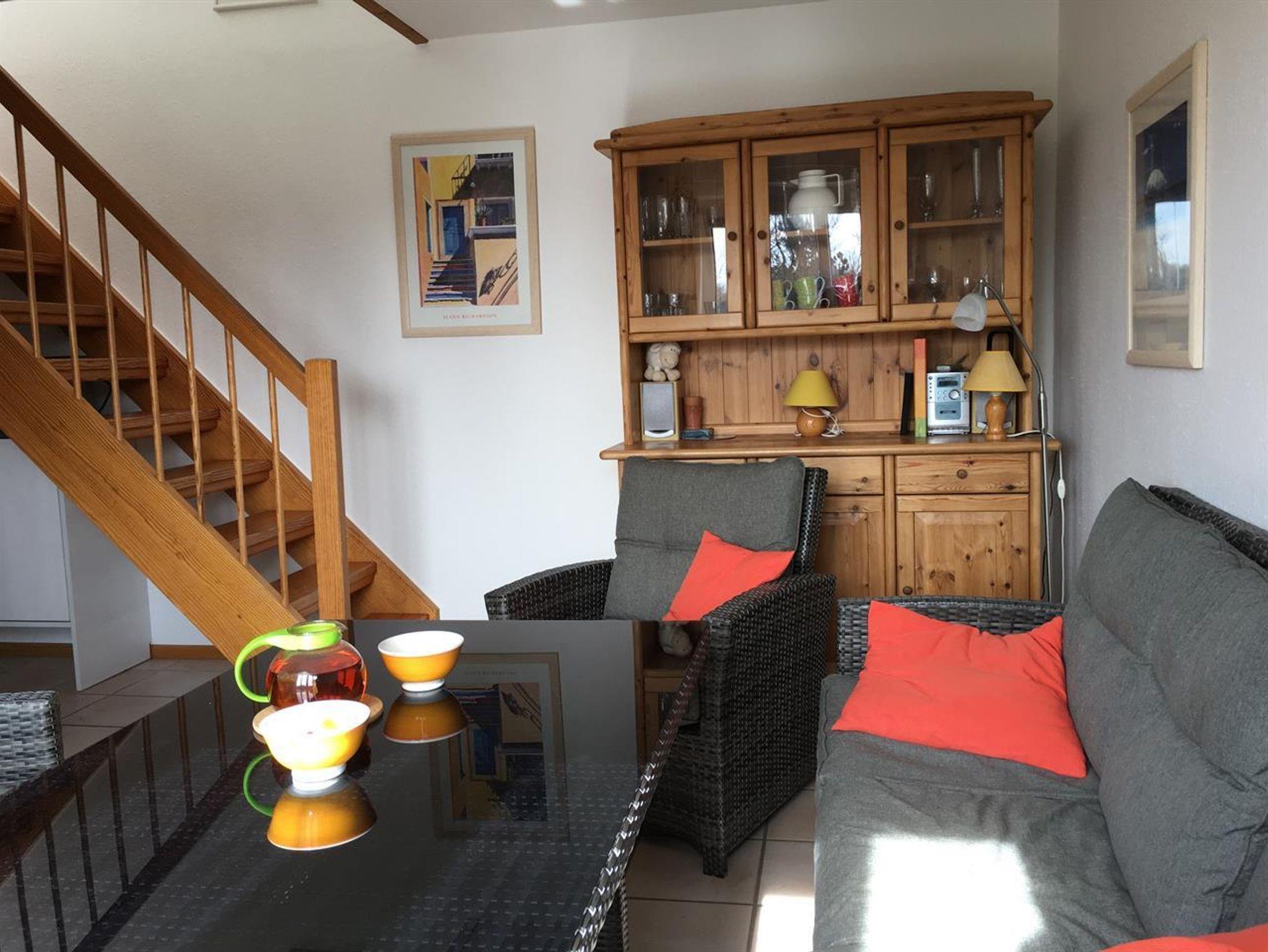 Im Wohnbereich erwartet Sie eine moderne Rattan-Couchgarnitur mit Sattelitenfernsehen und Ausblick aus dem Panoramafenster mit zwei großen Flügeltüren. Durch die Südwest-Ausrichtung können Sie Sonnenuntergänge richtig genießen.