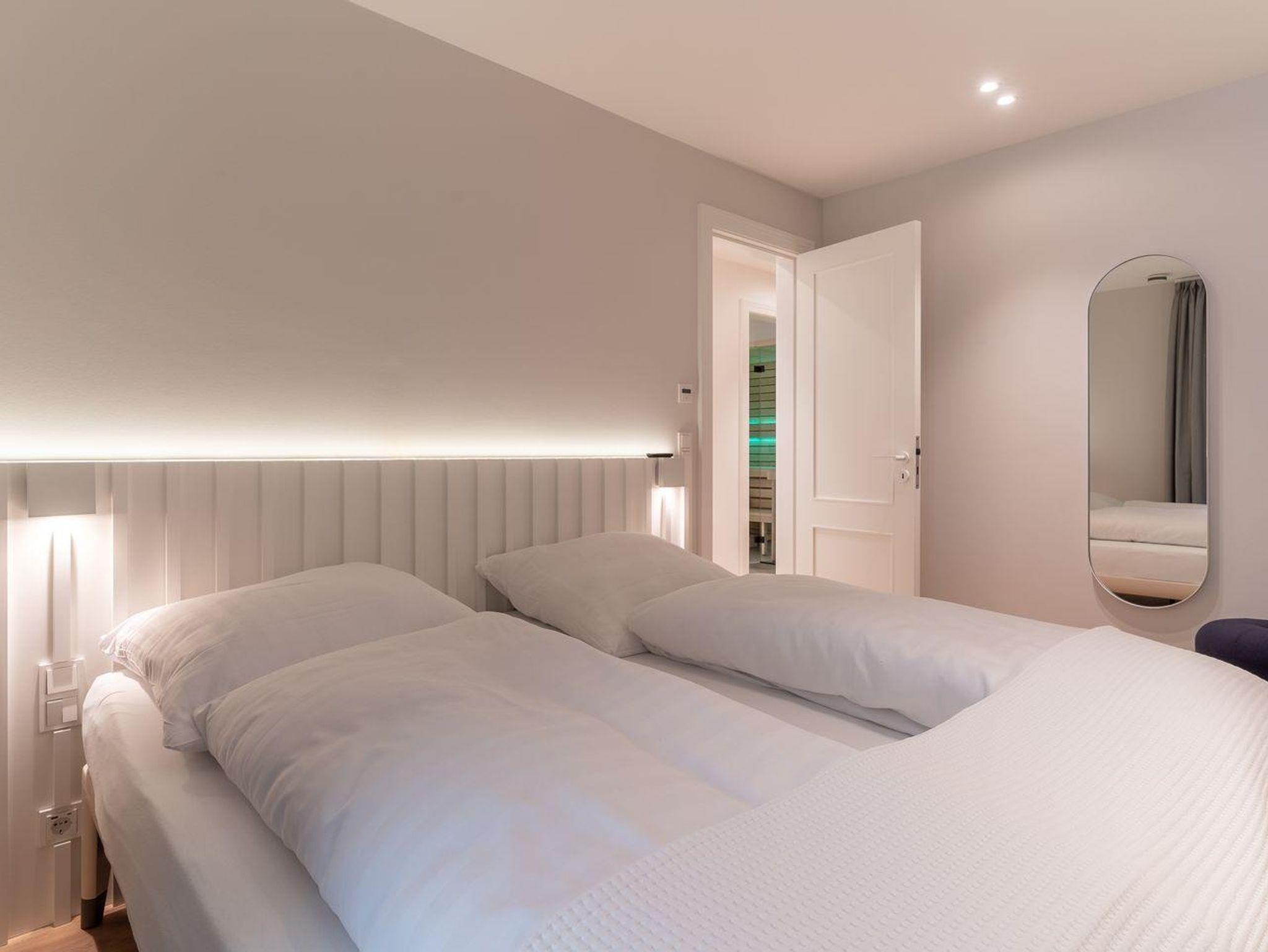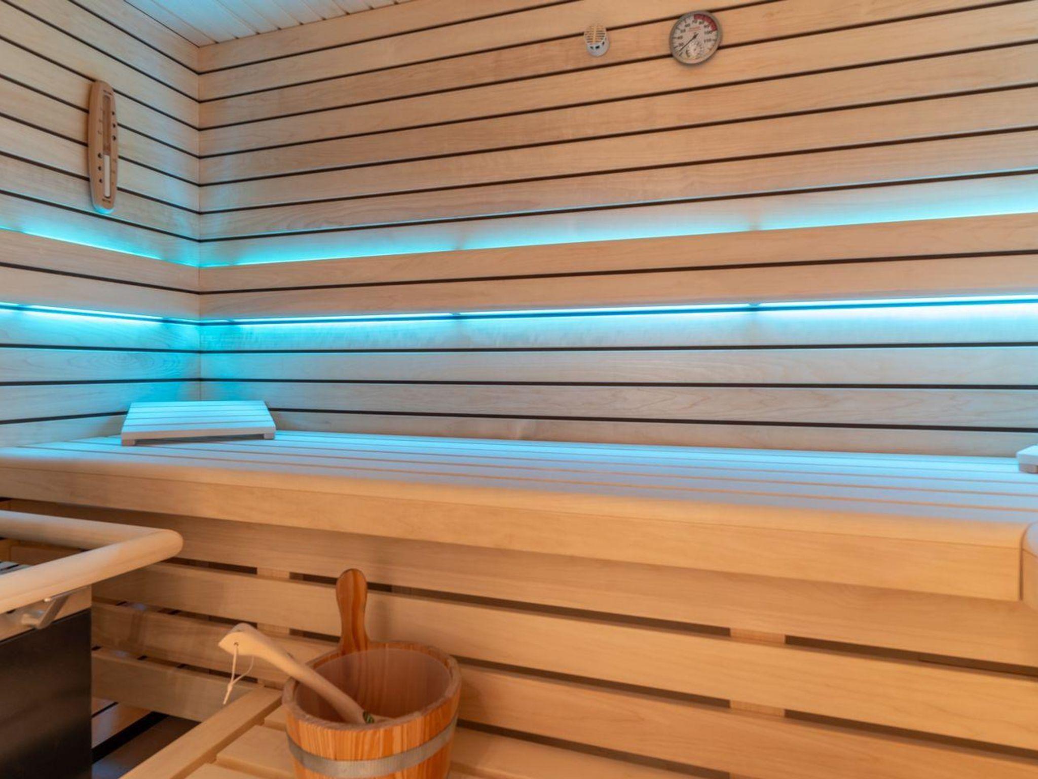 Das volle Wohlfühlprogramm erwartet Sie im Untergeschoss, das sowohl durch natürliches Tageslicht, als auch durch eine Strandbilder-Beleuchtung illuminiert wird. Sie gelangen direkt in den großzügigen Entspannungsbereich mit Sauna, großer Dusche und TV.