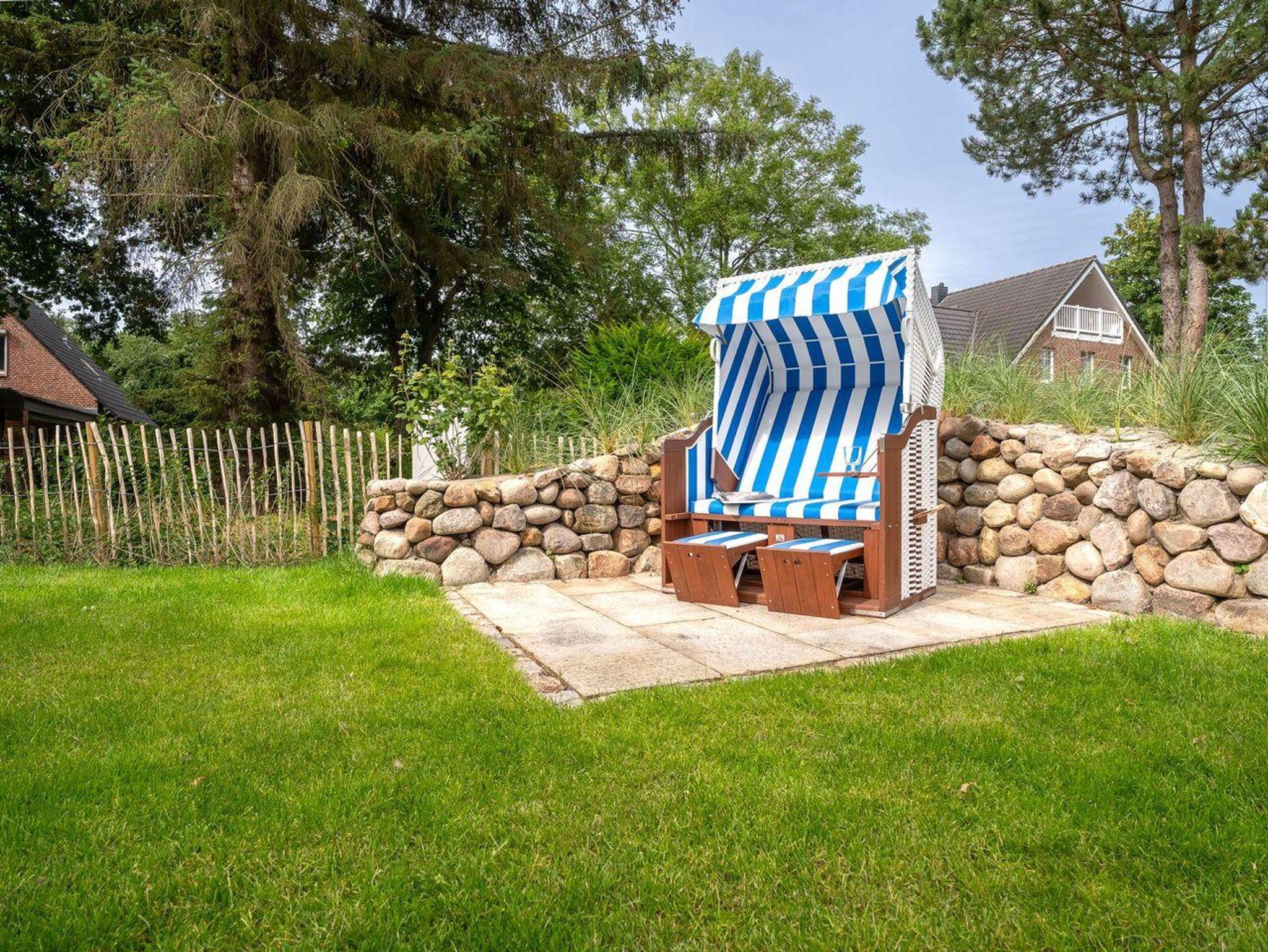 Das Grundstück mit Stellplatz, Rasenfläche rund um das Haus und zwei sonnigen Süd- und West-Terrassen ist mit heimischen Pflanzen angelegt. Ein Strandkorb lädt zu gemütlichen Stunden im Freien ein.