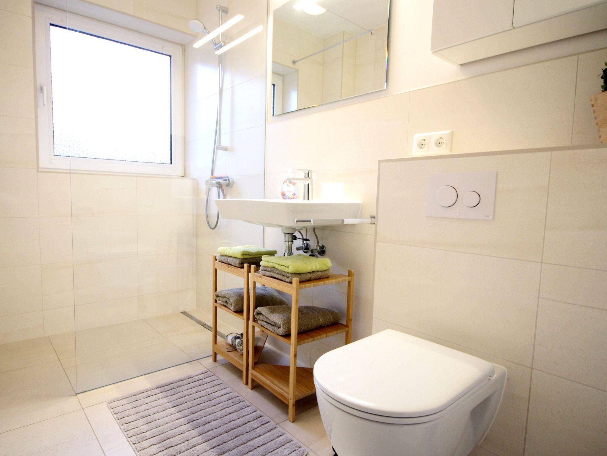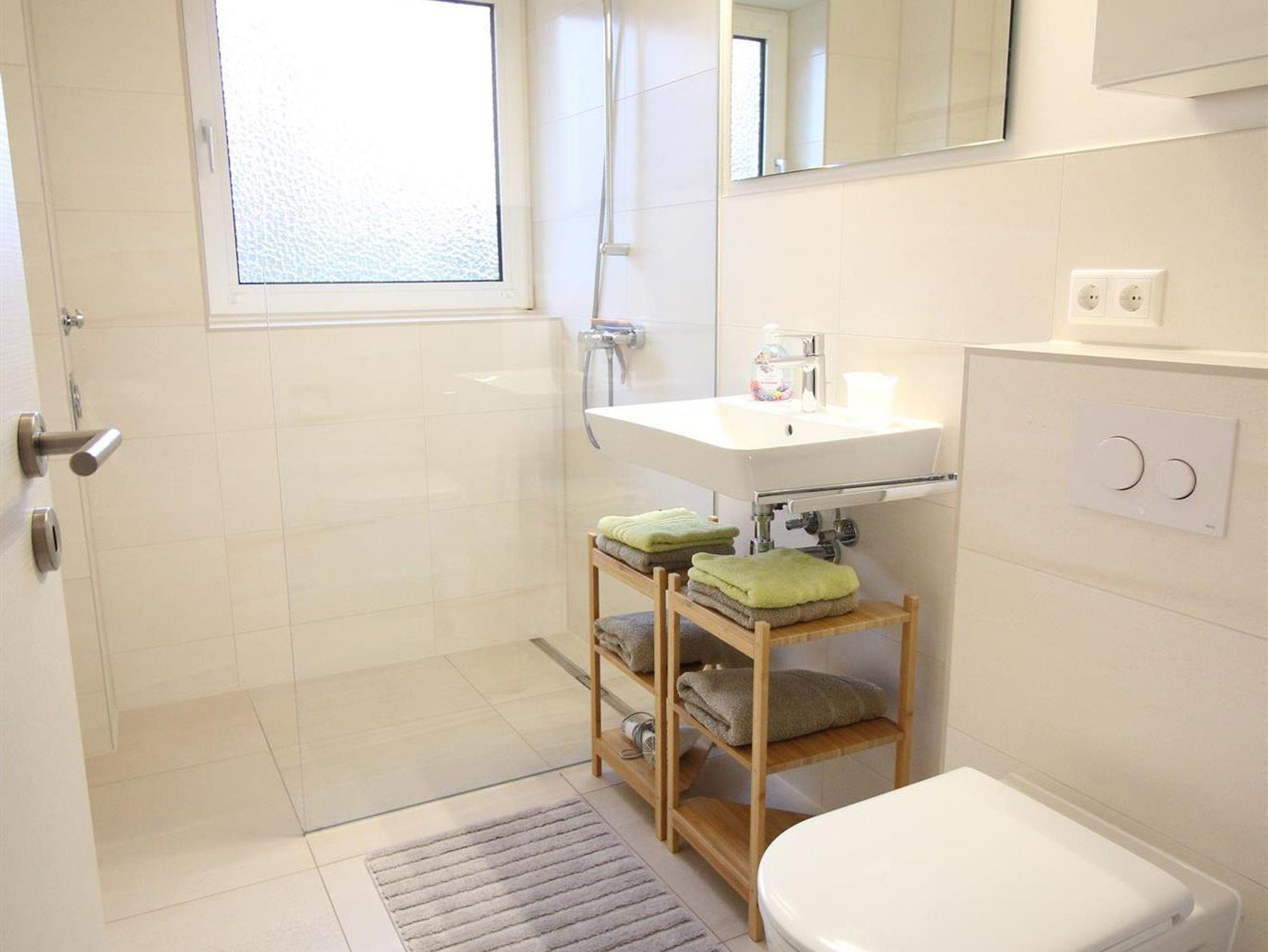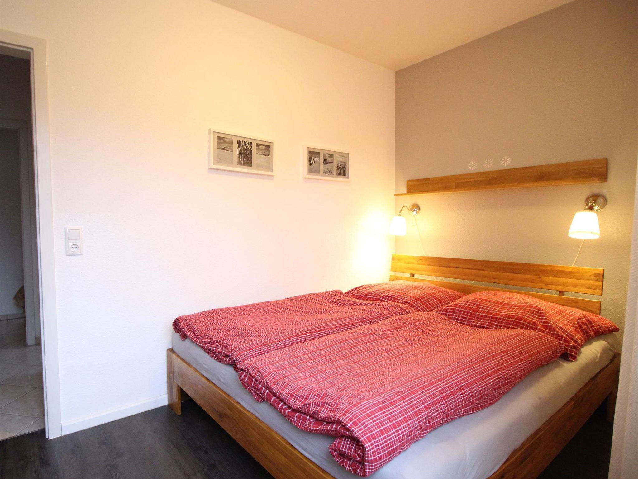 ein Schlafzimmer mit Doppelbett, Verdunklungsplissee, sowie ein neues Badezimmer (ab Januar 2020).