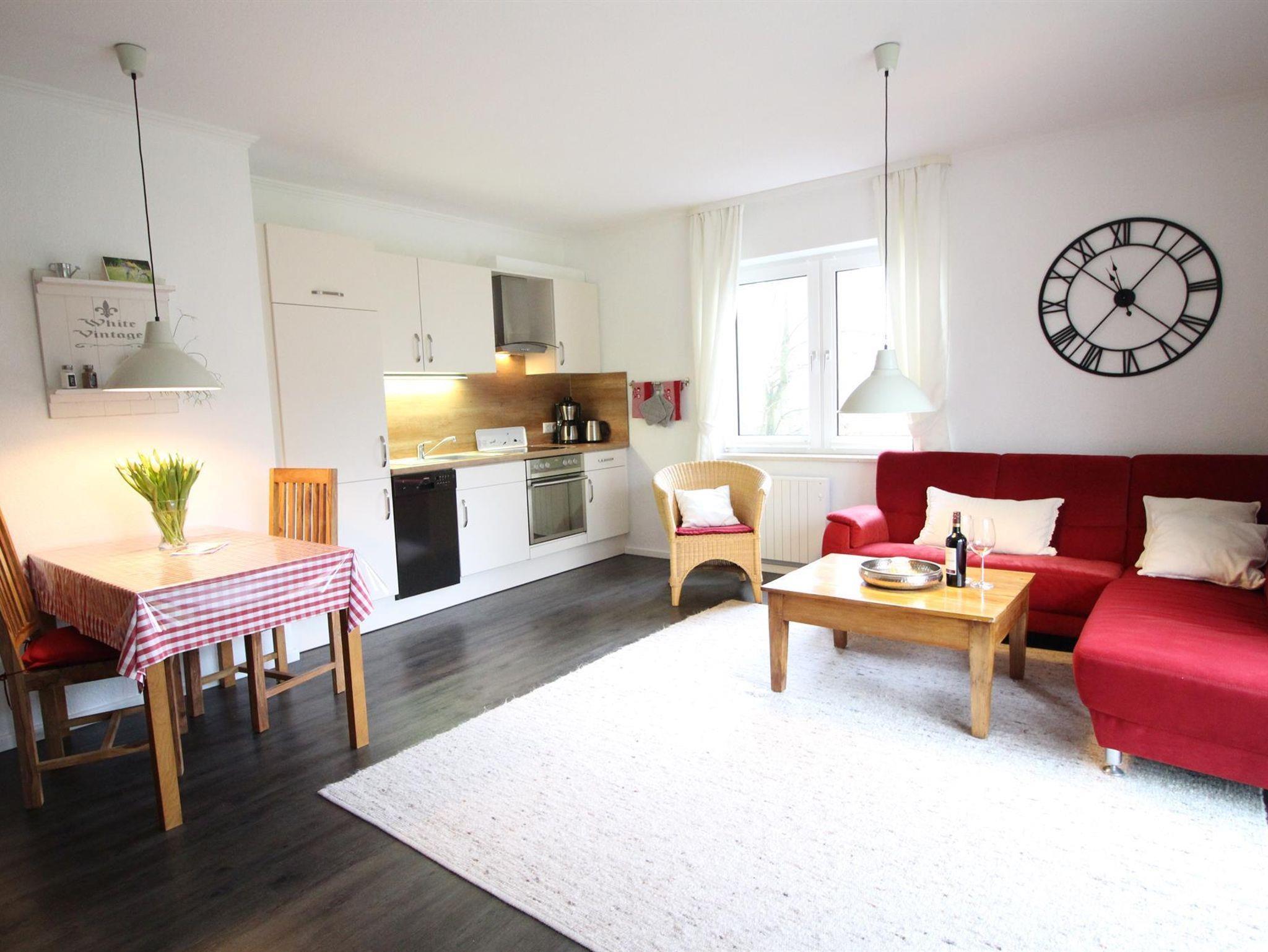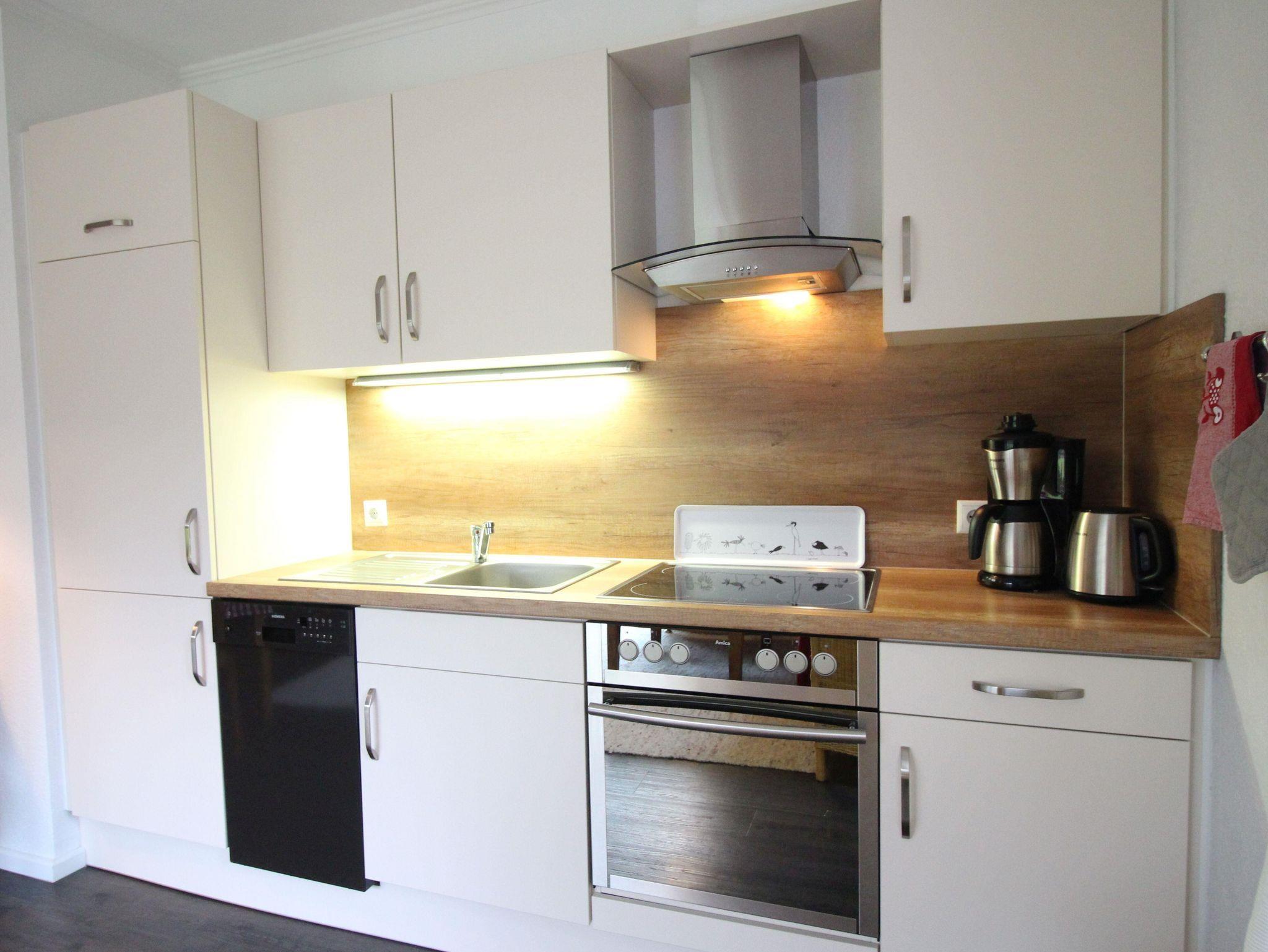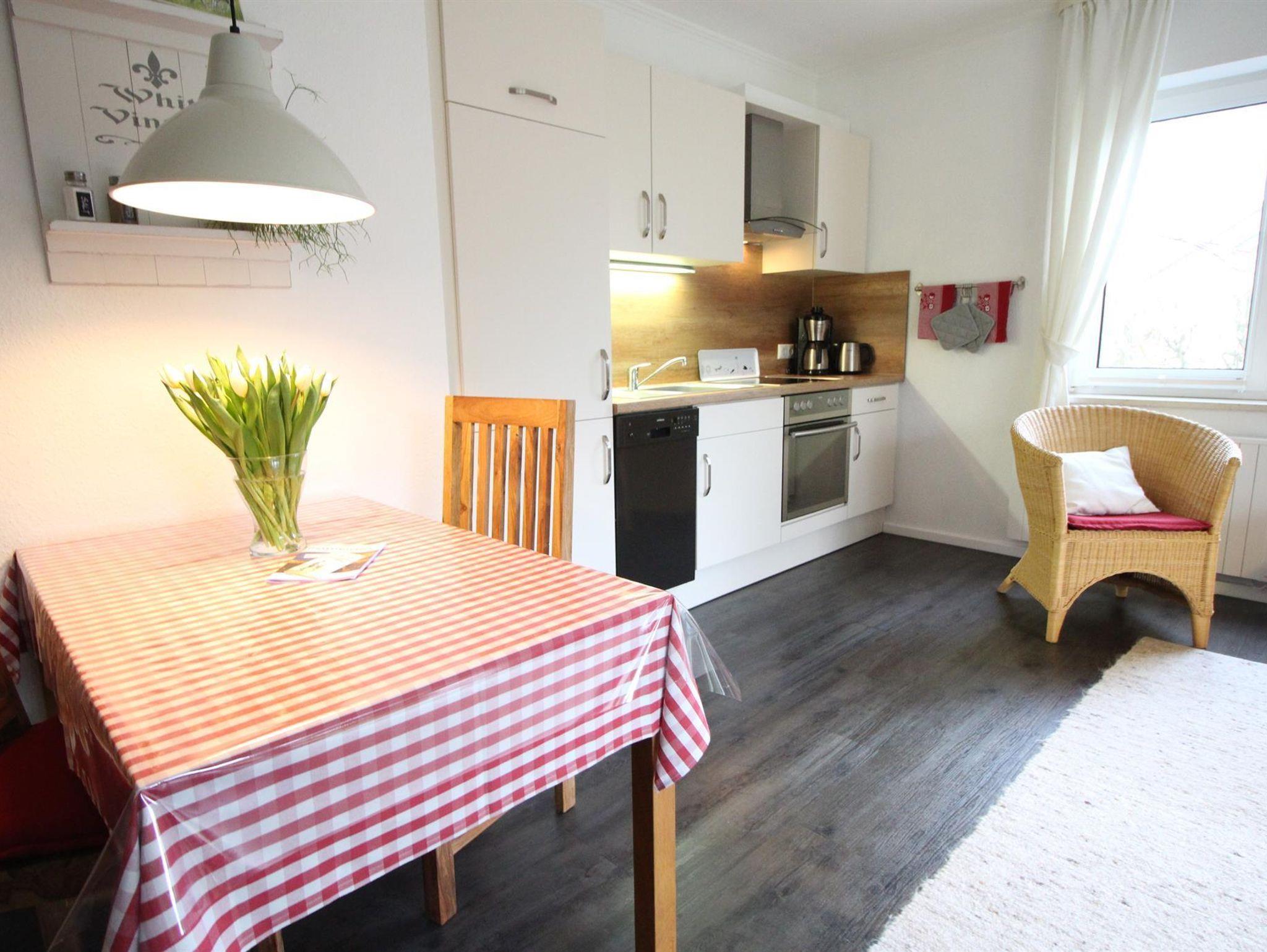 In der gut ausgestatteten Wohnung befinden sich ein Wohn-/Esszimmer mit Sitzmöglichkeiten und integrierter Einbauküchenzeile,