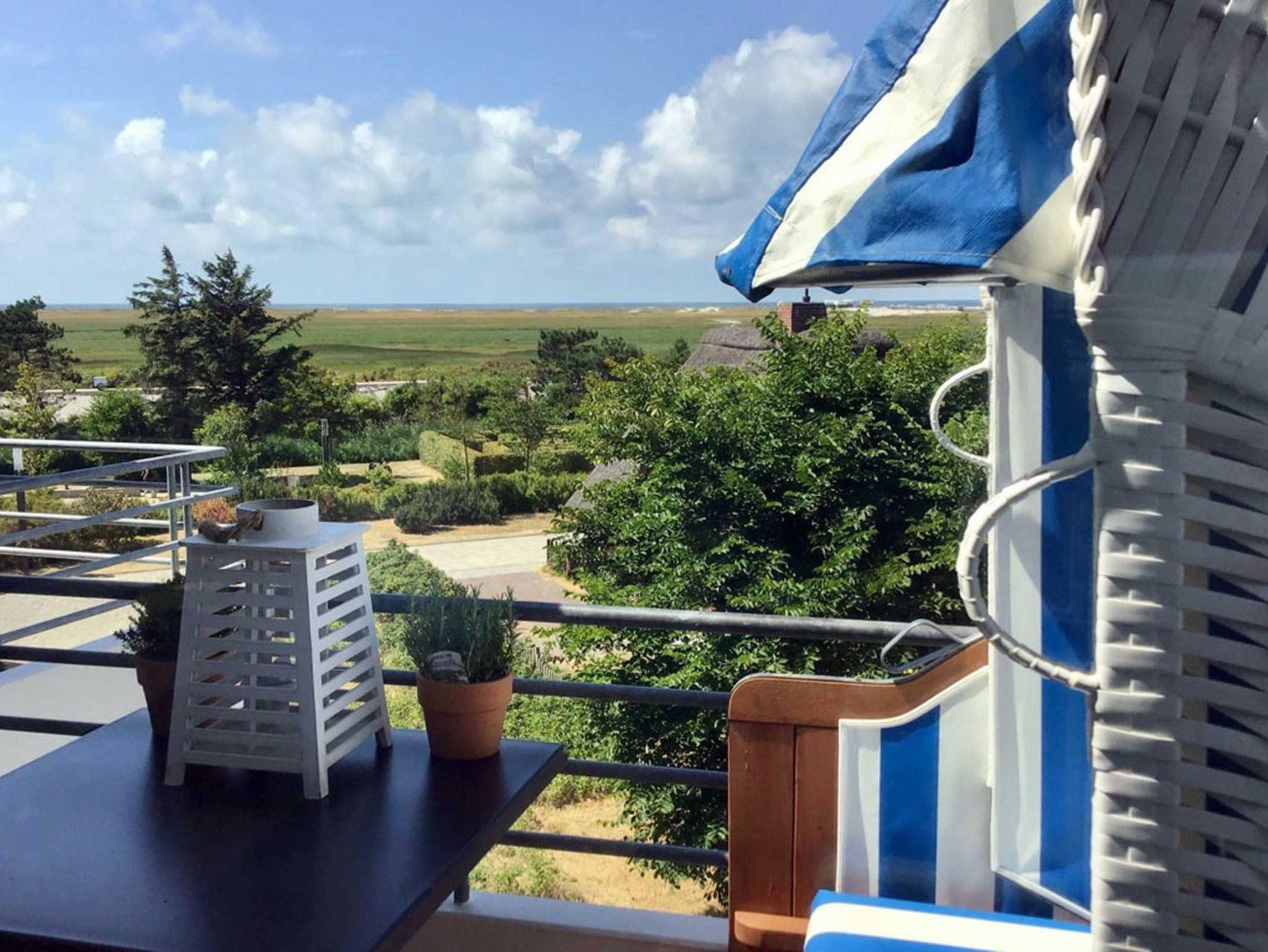 Wunderschöner Balkon: Ihr westlich ausgerichteter Balkon ist mit einem gemütlichen Strandkorb und stilvollen Balkonmöbeln ausgestattet ? der ideale Platz, um den Sonnenuntergang zu beobachten und die frische Seeluft zu genießen.