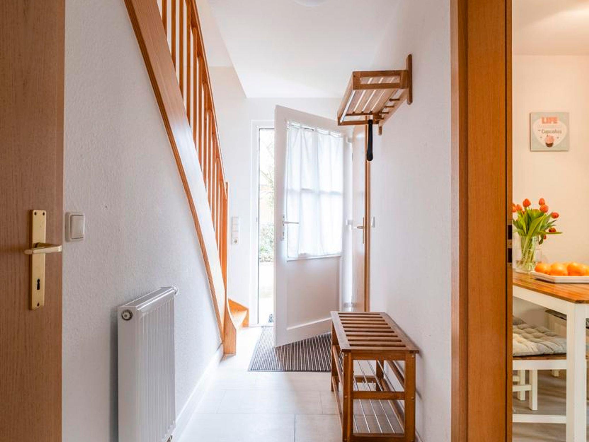 Haus Wiesenblick hat eine sonnige Südterrasse mit unverbautem Blick auf eine Weide mit Pferden und Schafen. Das grosse und helle Wohnzimmer ist hochwertig eingerichtet. Die Küche verfügt über einen Geschirrspüler, einen Kühlschrank mit Gefrierfach, eine Mikrowelle, Kaffeemaschine, Toaster, Wasserkocher und einem Herd mit 4 Kochfeldern. Im angrenzenden HWR befindet sich eine Waschmaschine mit Trockner, Bügeleisen und Bügelbrett. Stellplatz am Haus.