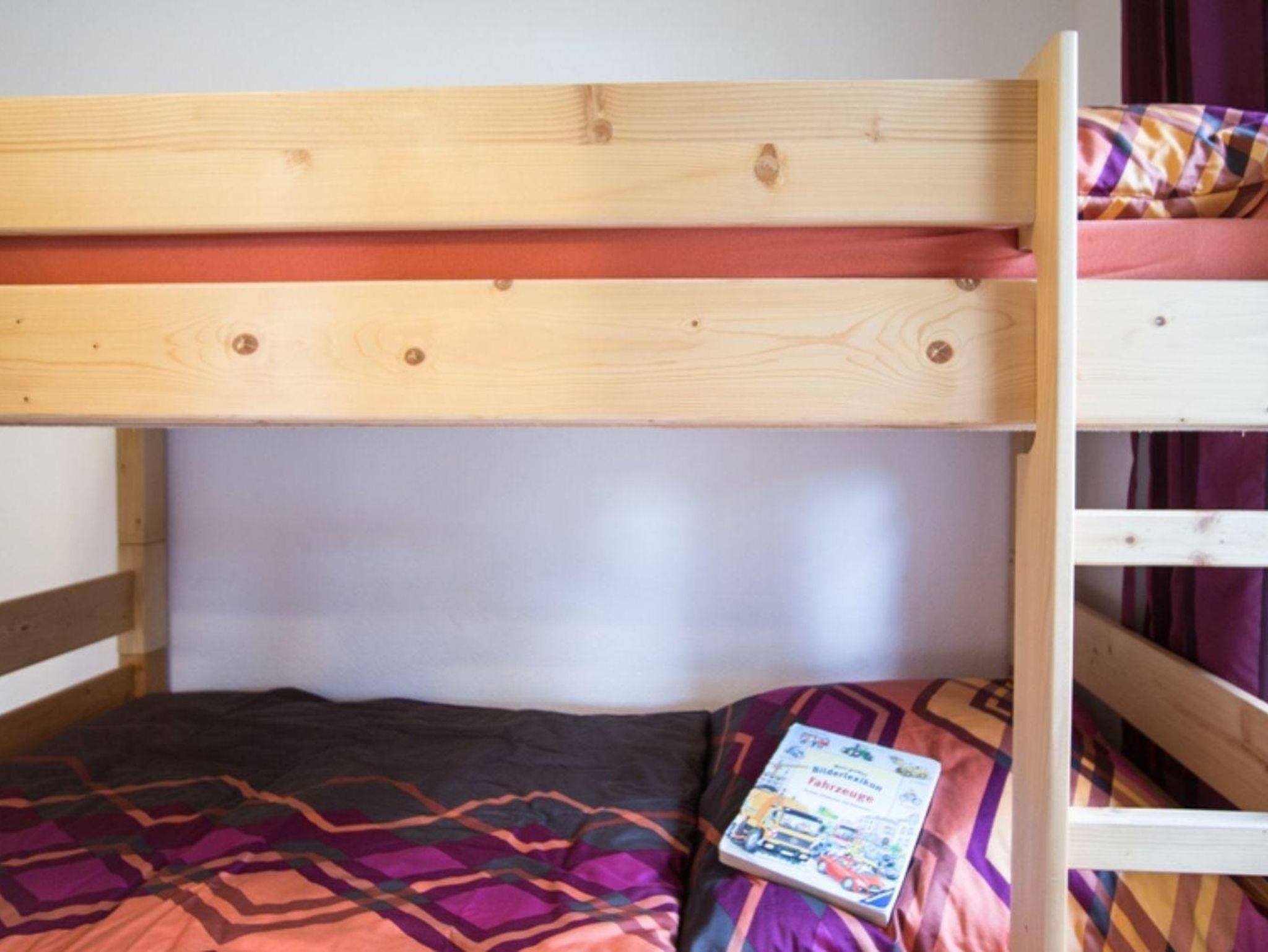 Schlafzimmer 3: Etagenbett (Liegefläche je 200 x 90 cm), 2türiger Stauraumschrank, Regal, Fliegengitter, Kinderspielzeugkiste