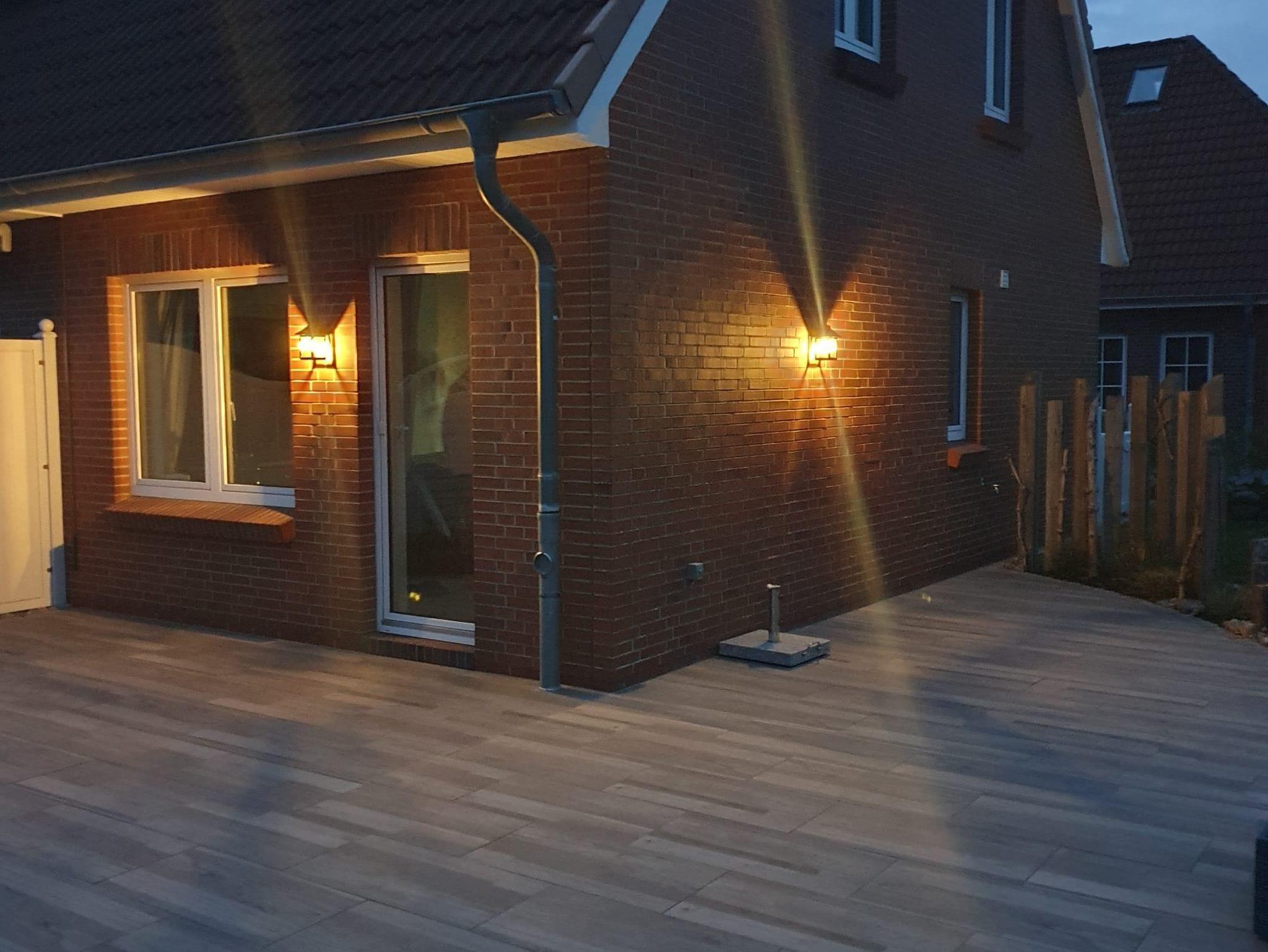 Zum Haus gehört ein eigener KfZ-Stellplatz. Fahrräder, Bollerwagen etc. finden Platz auf der großen, L-förmigen Terrasse.
