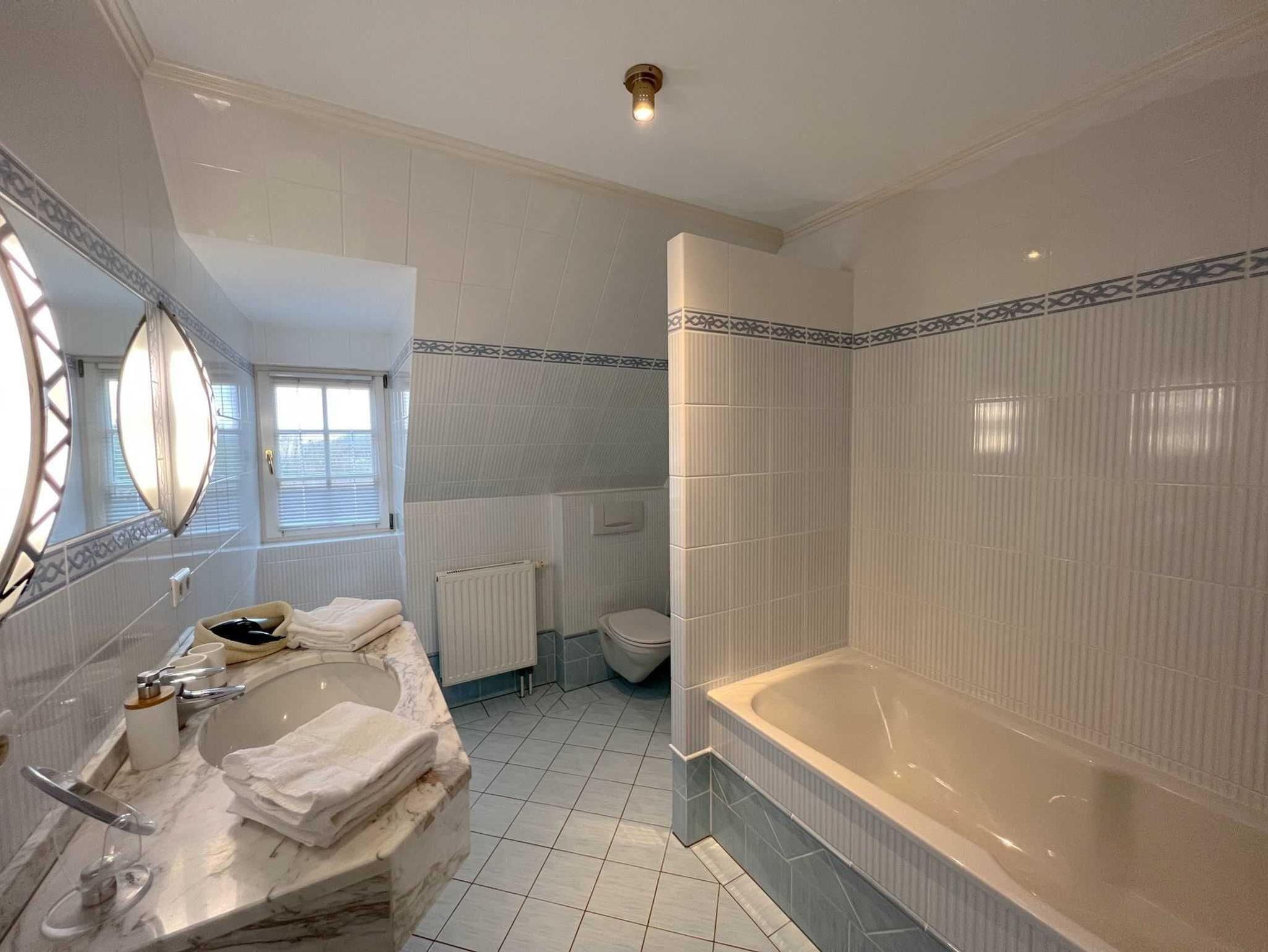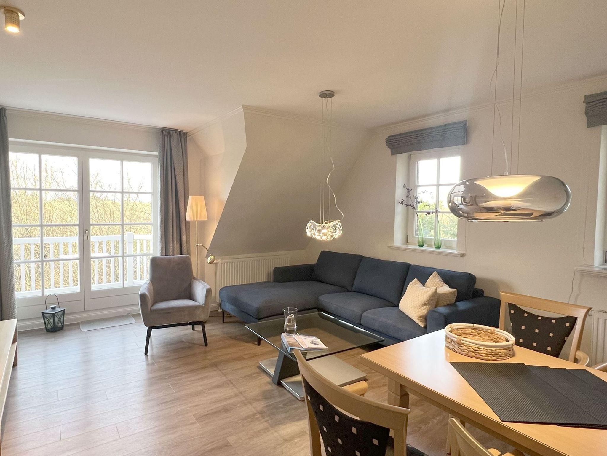 Die 75 qm dieser wunderbaren Wohnung teilt sich wie folgt auf: Eingangsbereich; Eingangsdiele mit Garderobe; großzügiger Wohn-Essbereich mit direktem Zugang auf einen Balkon mit Gartenmöbeln, zusätzlich im Dünengelände eine große, durch Friesenwälle und Gehölze abgeschirmte Terrasse mit Gartenmöbeln und einem Strandkorb. Zwei Schlafzimmer mit Doppelbetten, ein Duschbad/WC , ein Wannenbad/WC Separate Küche. Im Untergeschoss des mitleren Einganges befindet sich eine Gemeinschaftssauna (Ruheraum, verschiedene Duschen; Fußbäder), Solarium, Fitnessraum, Tischtennis. Im Außenbereich: ein Spielplatz für die Kleinsten, Stellplatz, Fahrradständer