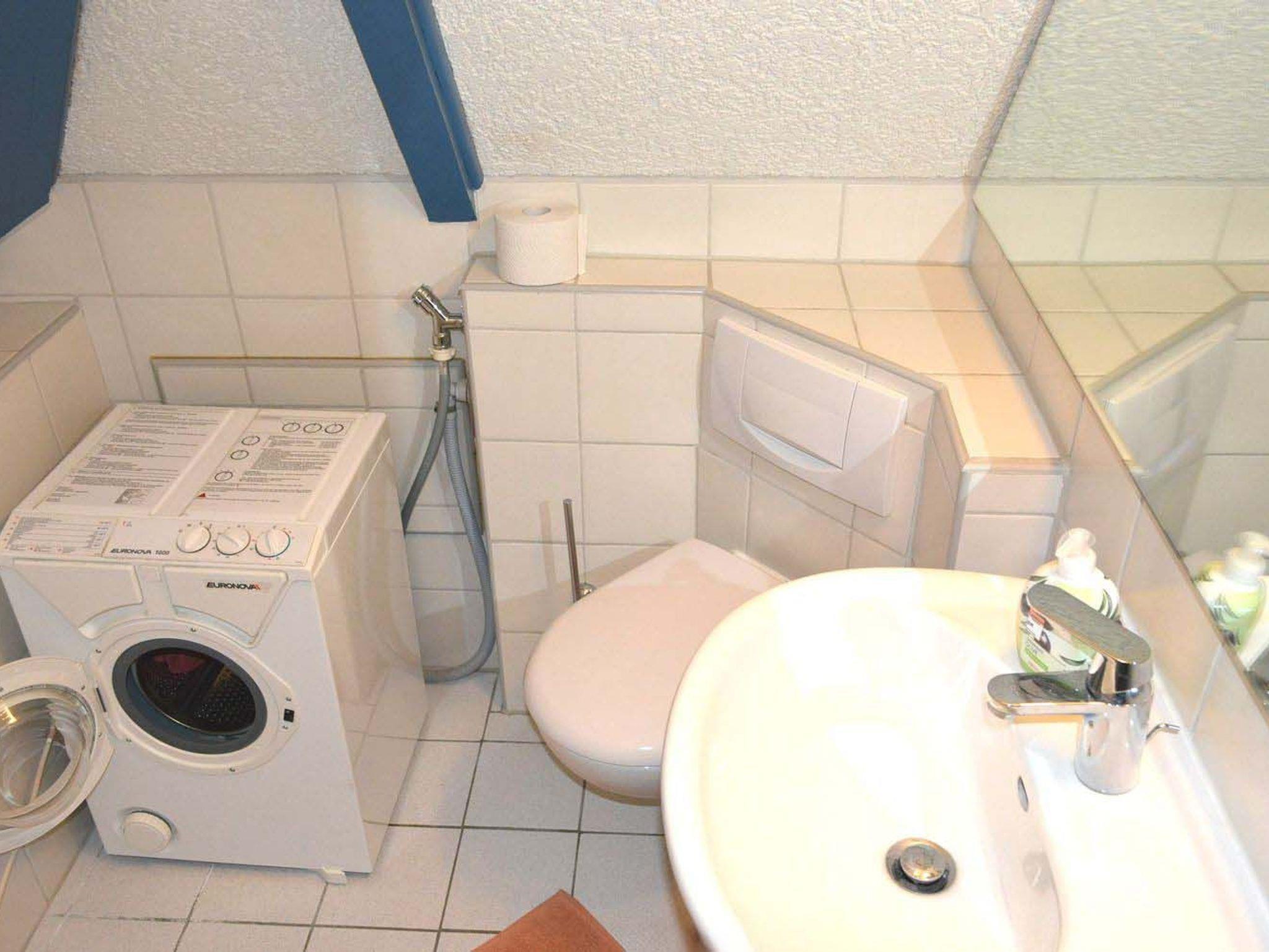 Bad 2: Spiegel, Waschbecken, Waschmaschine, WC