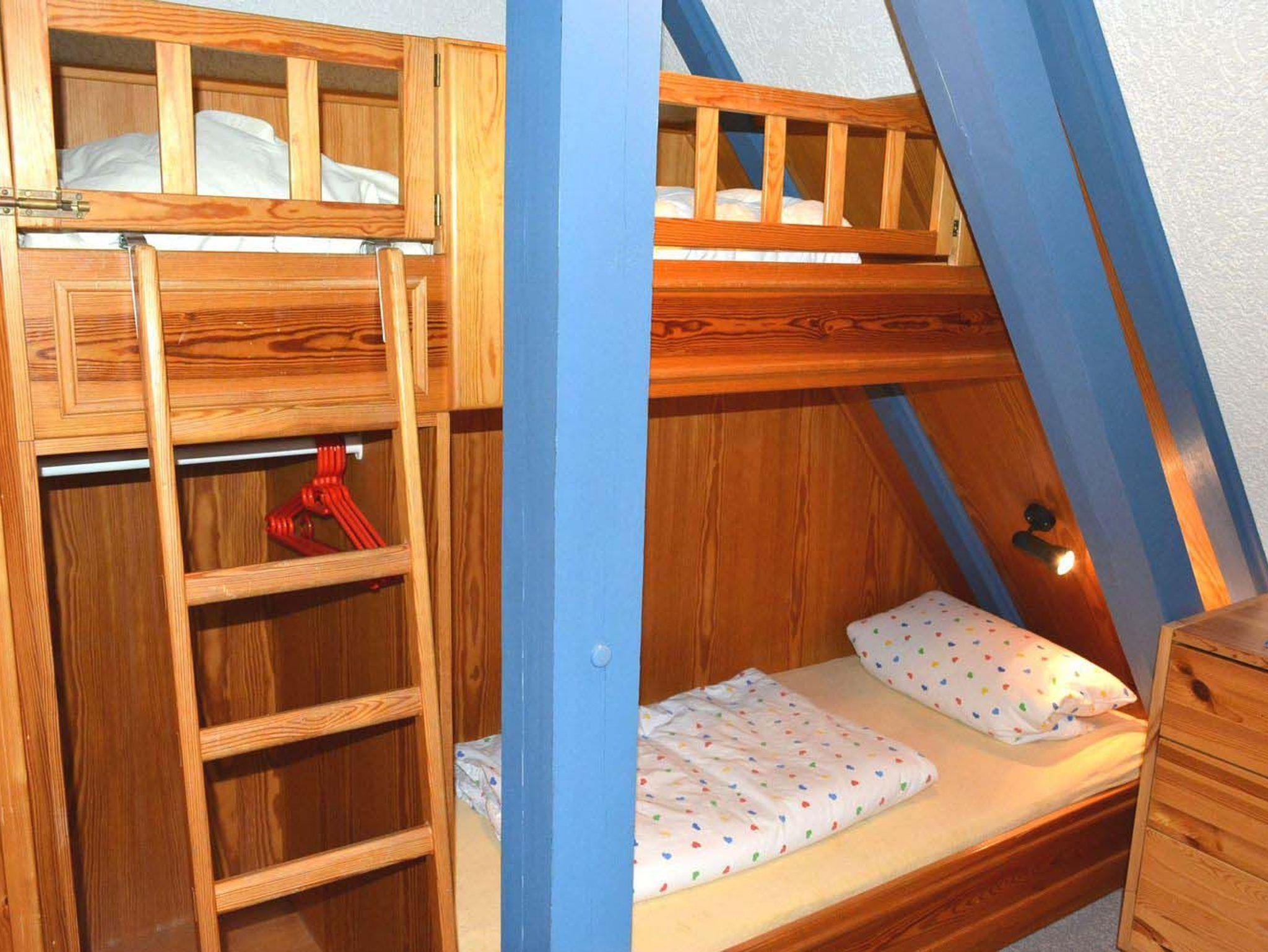 Schlafzimmer 3: Etagenbett (oben aber nur 1,70 m lang), Kindergitterbett 0,65 x 1,20 m, Kommode, Wickelauflage, Wickeltisch