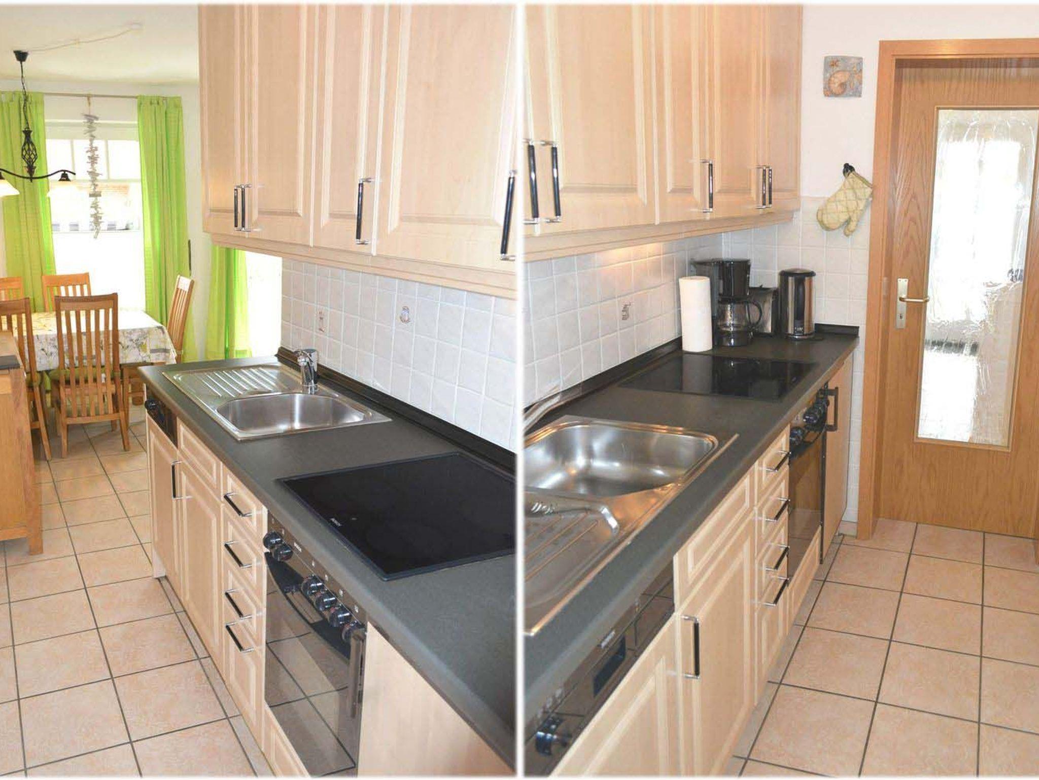 Wohnzimmer: 4 Plattenherd mit Ceranfeld und Backofen, 5 Stühle, Anrichte, Couchtisch, Dunstabzugshaube, E-Heizung, Eckledercouch, Eierkocher, Einbauküche, Esstisch, Flachbildschirm, Geschirr, Handmixer, Kabel-TV, Kaffeemaschine, Kochtöpfe, Kühlschrank mit 3* Gefrierfach, Spülmaschine, Stereoanlage mit DVD-Player - USB und I-Pod Anschluss, Toaster, Vitrinenschrank, Wandlampe, Wasserkocher