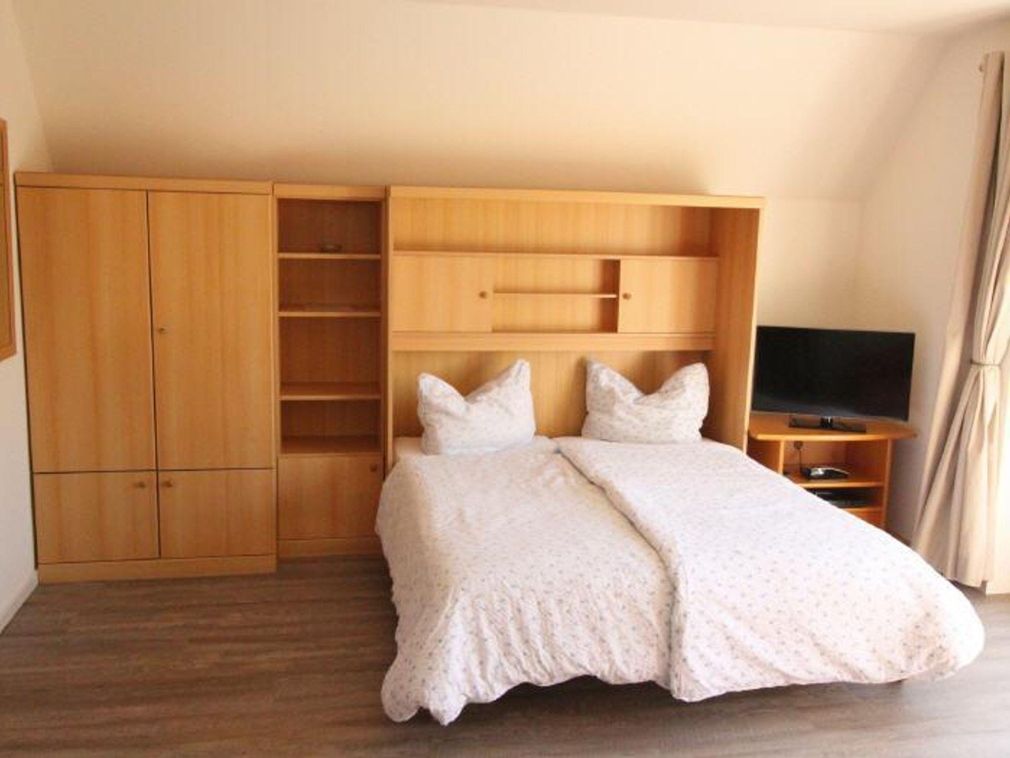 Die moderne und helle Ferienwohnung für 2 Personen befindet sich im ersten Stock und bietet Ihnen einen kombinierten Wohn- Schlafraum (Doppelbett als Schrankbett) mit Küchenzeile, Duschbad, Flur und Südwest- Balkon. Überblick 1. Stock, 32 qm, 2Personen kombinierter Wohn- Schlafraum Doppelbett als Schrankbett Flachbildschirm, DVD-Player, Radio Hotsplots / Internetzugang kostenpflichtig Küchenzeile (Geschirrspülmaschine, Kühlschrank, Mikrowelle, Kaffeemaschine, Wasserkocher) Duschbad, Flur, Pkw Stellplatz am Haus, Fahrradschuppen Münzwaschmaschine, Trockner, Bügeleisen stehen zur Mitbenutzung zur Verfügung
