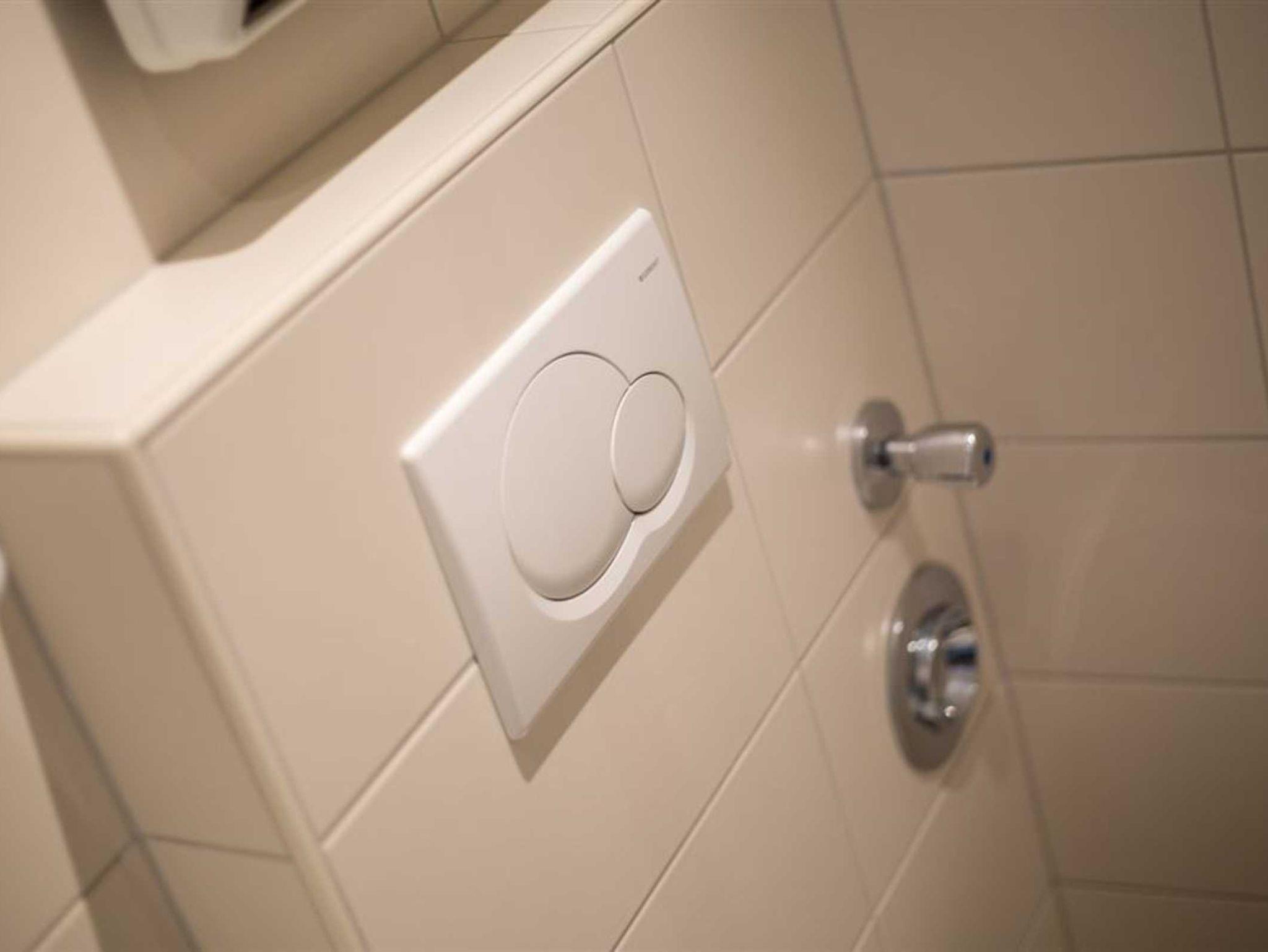 Modernisiertes Badezimmer (Duschbad) mit Dusche und WC.