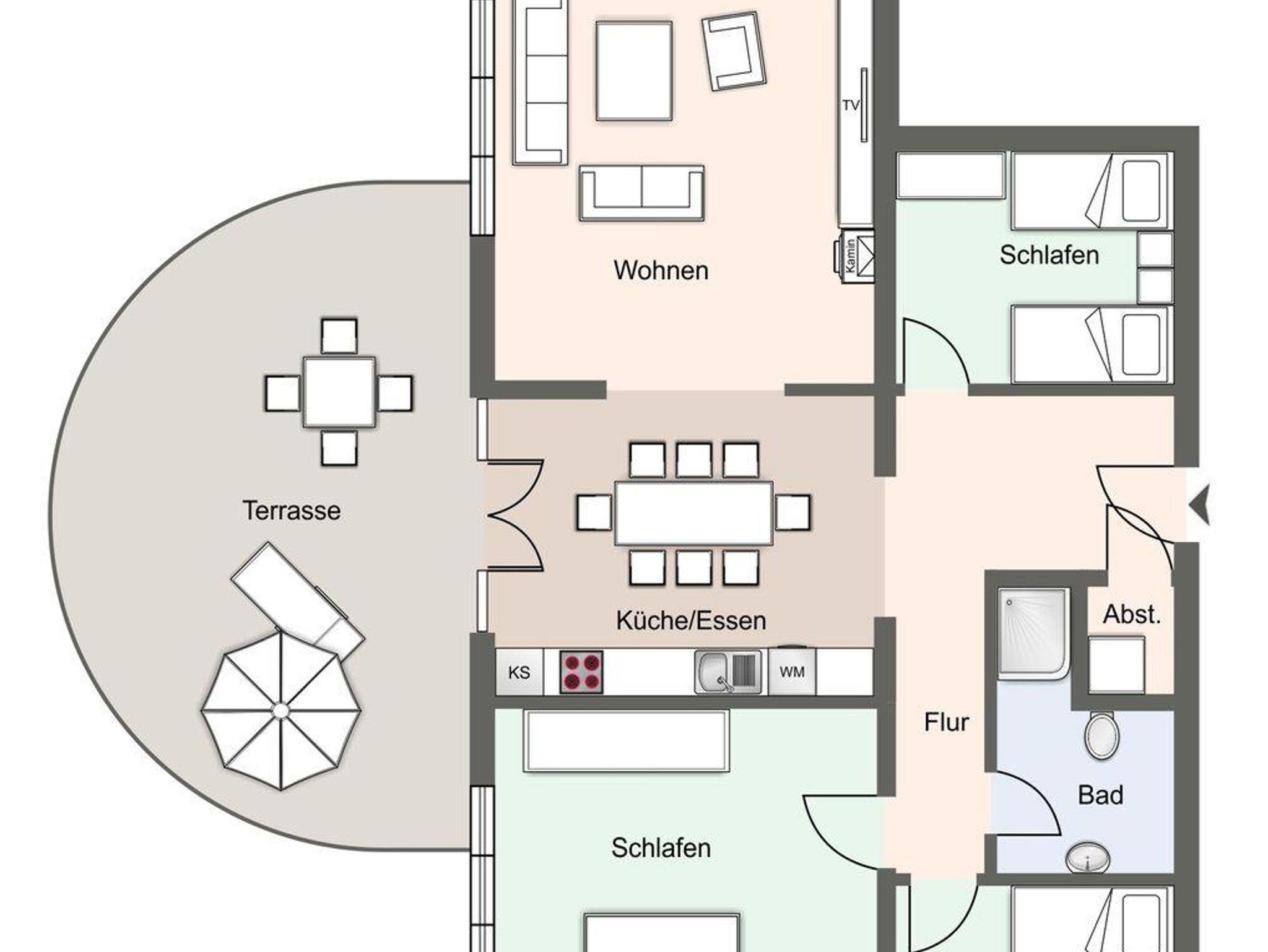 Die stilvoll eingerichtete Erdgeschosswohnung im Appelsnuut bietet auf rund 112?m² großzügigen Raum für einen entspannten Nordseeurlaub.
