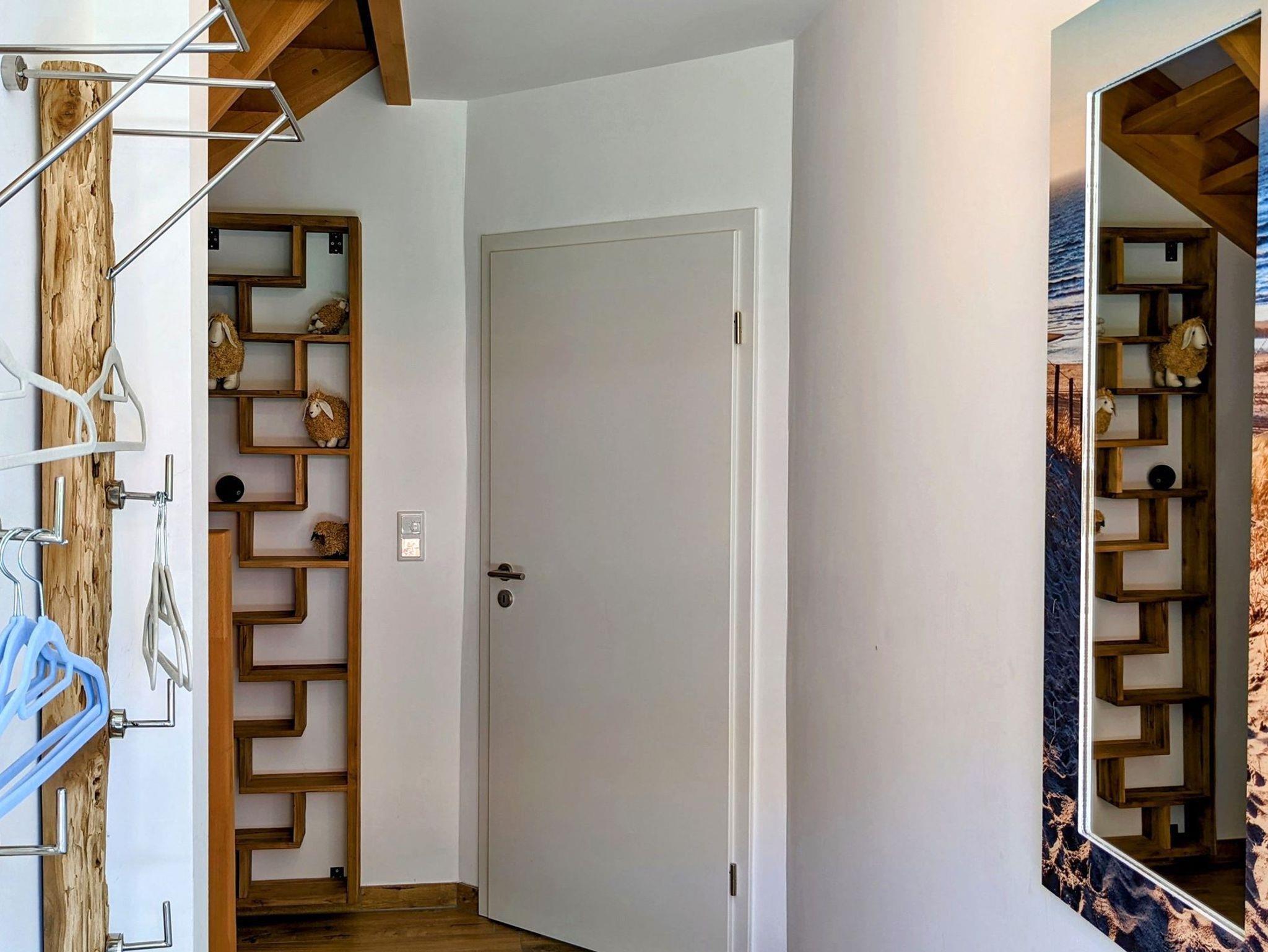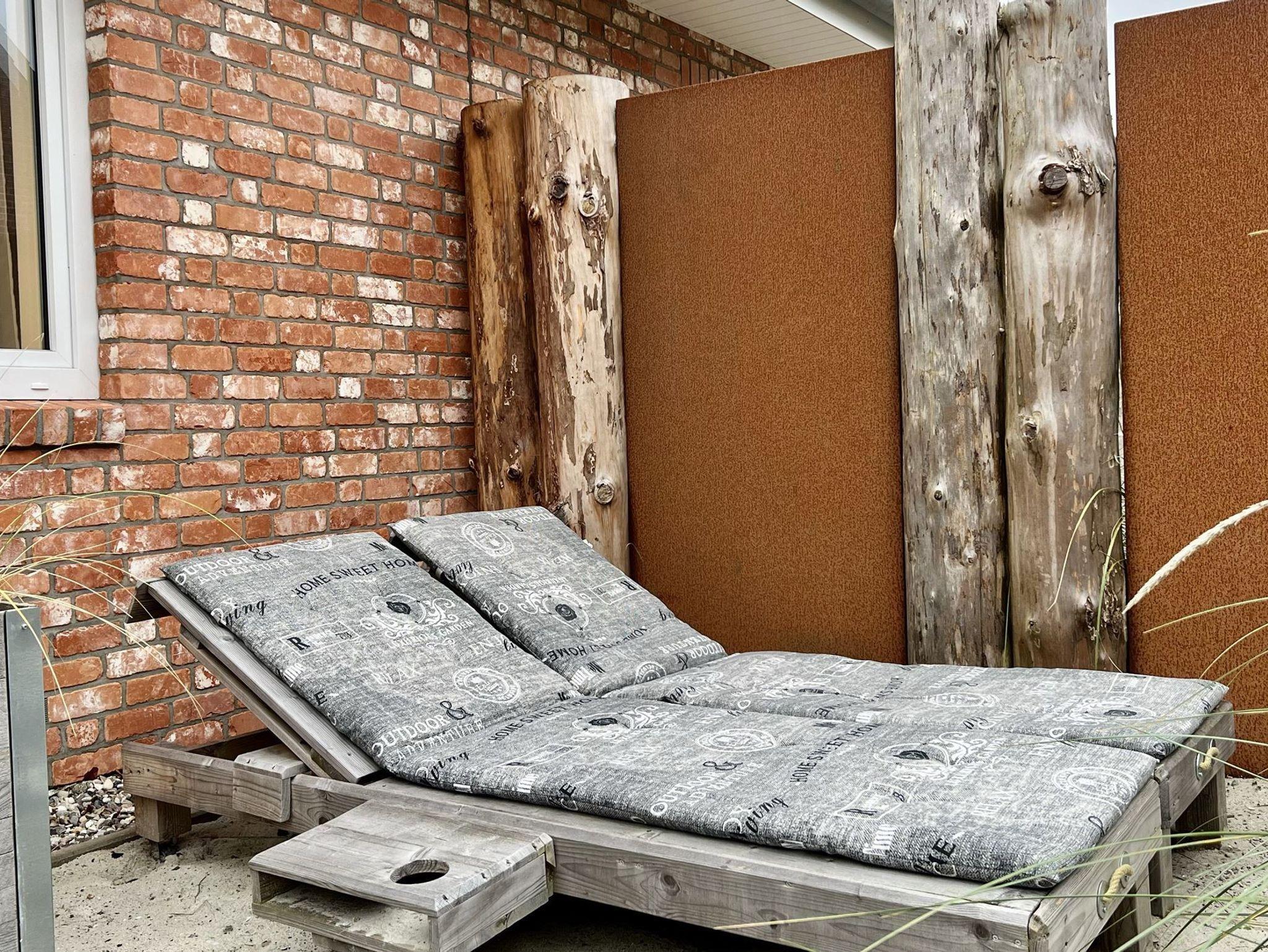 Im Erdgeschoss befindet sich ein offener Wohn-Essbereich mit einer U-förmigen, umfangreich ausgestatteten Küche. Am Morgen genießen Sie einen ersten Kaffee am Küchentresen. Im Wohnbereich lädt eine Sofalandschaft zum Entspannen am Kaminofen ein. Hier befindet sich auch ein großer Fernseher, der - wie auch das WLAN - kostenlos genutzt werden kann. Über einen ebenerdigen Zugang gelangen Sie auf die möblierte Terrasse des Hauses. Dort locken zudem zwei Sonnenliegen, ein Sonnenschirm und ein Strandkorb nach draußen. In der umlaufend angelegten Dünenlandschaft befindet sich sogar eine Außensauna, ein Highlight für Saunabegeisterte. Am Ende eines Urlaubstages finden Sie Erholung in einem der drei Schlafzimmer, von denen zwei mit Doppelbetten und eines mit zwei Einzelbetten ausgestattet ist. Ein Babyreisebett und ein Hochstuhl ist vorhanden. Zwei Bäder mit ebenerdigen Duschen im EG und im 1.OG sind vorhanden, ebenso Waschmaschine und Trockner. PKW-Stellplatz vor dem Haus.