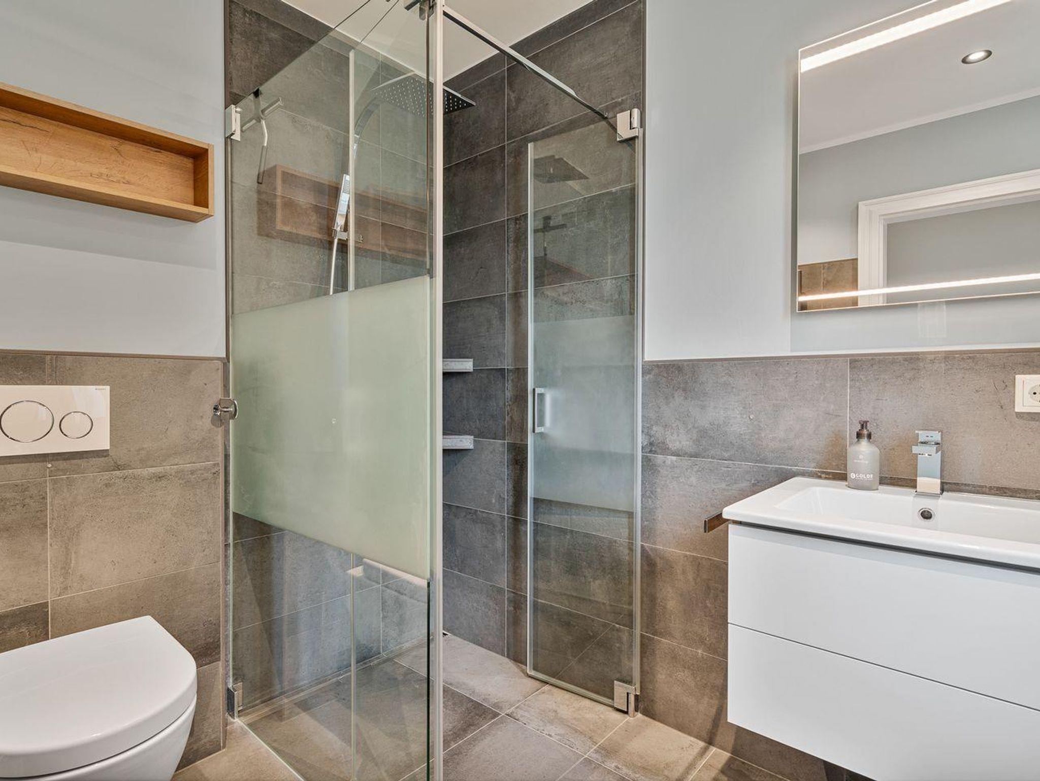 Zwei Schlafzimmer mit je einem Boxspring-Doppelbett (180x200 & 140x200 m) sind ausgestattet mit TV und großen Kleiderschränken. Darüber hinaus befindet sich im Obergeschoss ein weiteres Bad mit Dusche.
