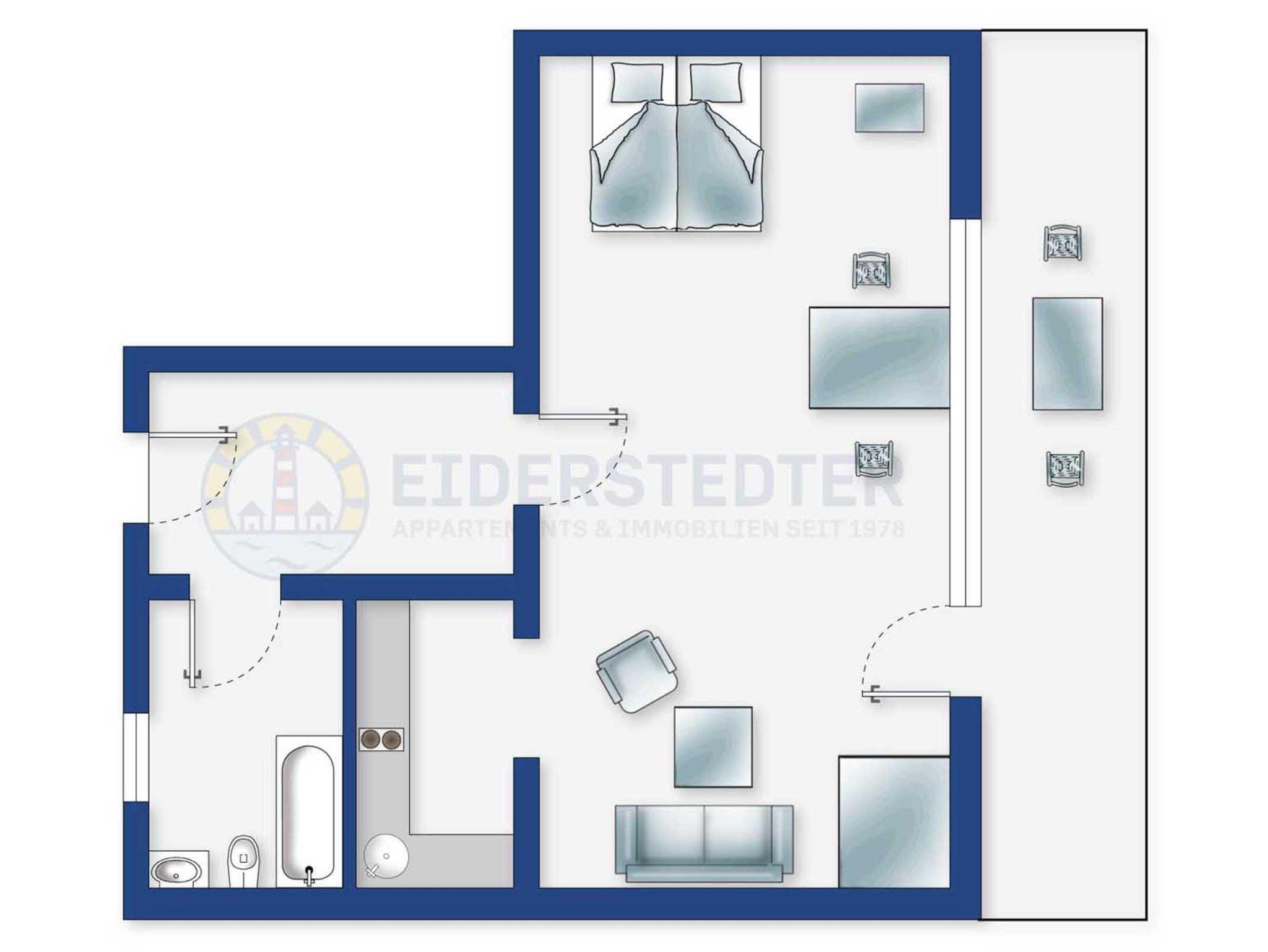 Gemütliches Studio-Appartement mit ca. 38 qm auf 1 Ebene (3. OG, barrierefrei mit Fahrstuhl erreichbar) für bis zu 2 Personen. In zentraler Lage im Ortsteil Bad in St. Peter-Ording. Alle Geschäfte und Restaurants des Kurzentrums befinden sich in unmittelbarer Nachbarschaft. Zum Strand und zur Dünen-Therme sind es nur wenige Gehminuten. Genießen Sie den Sonnenuntergang über der Nordsee von Ihrem eigenen Balkon aus.